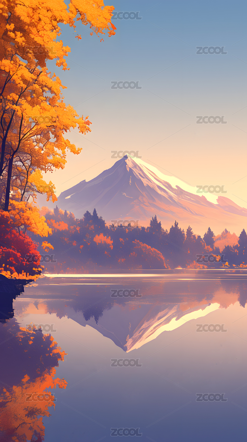 秋日湖景主题