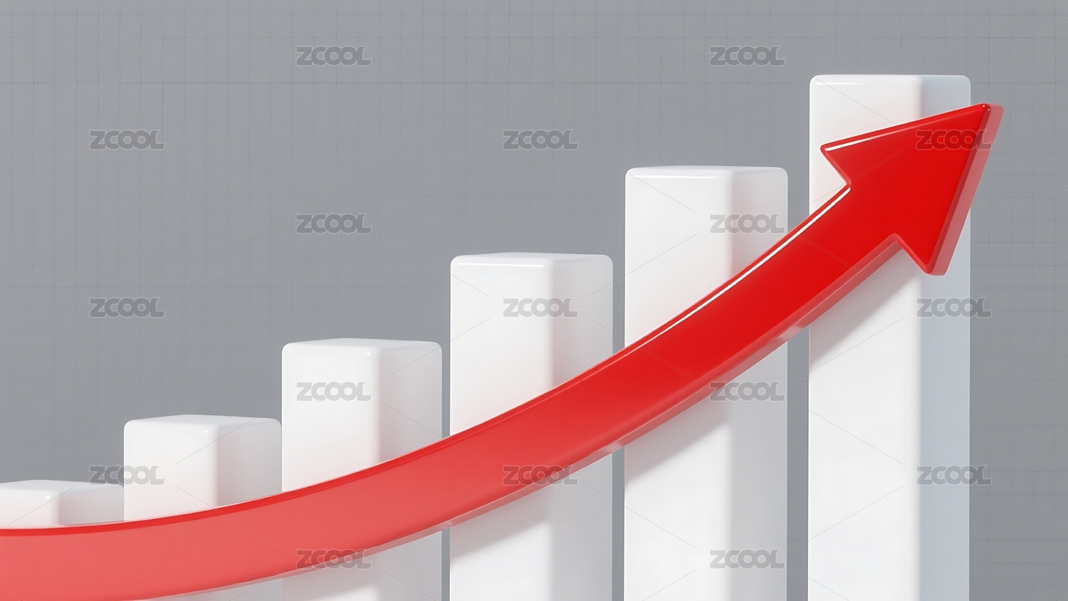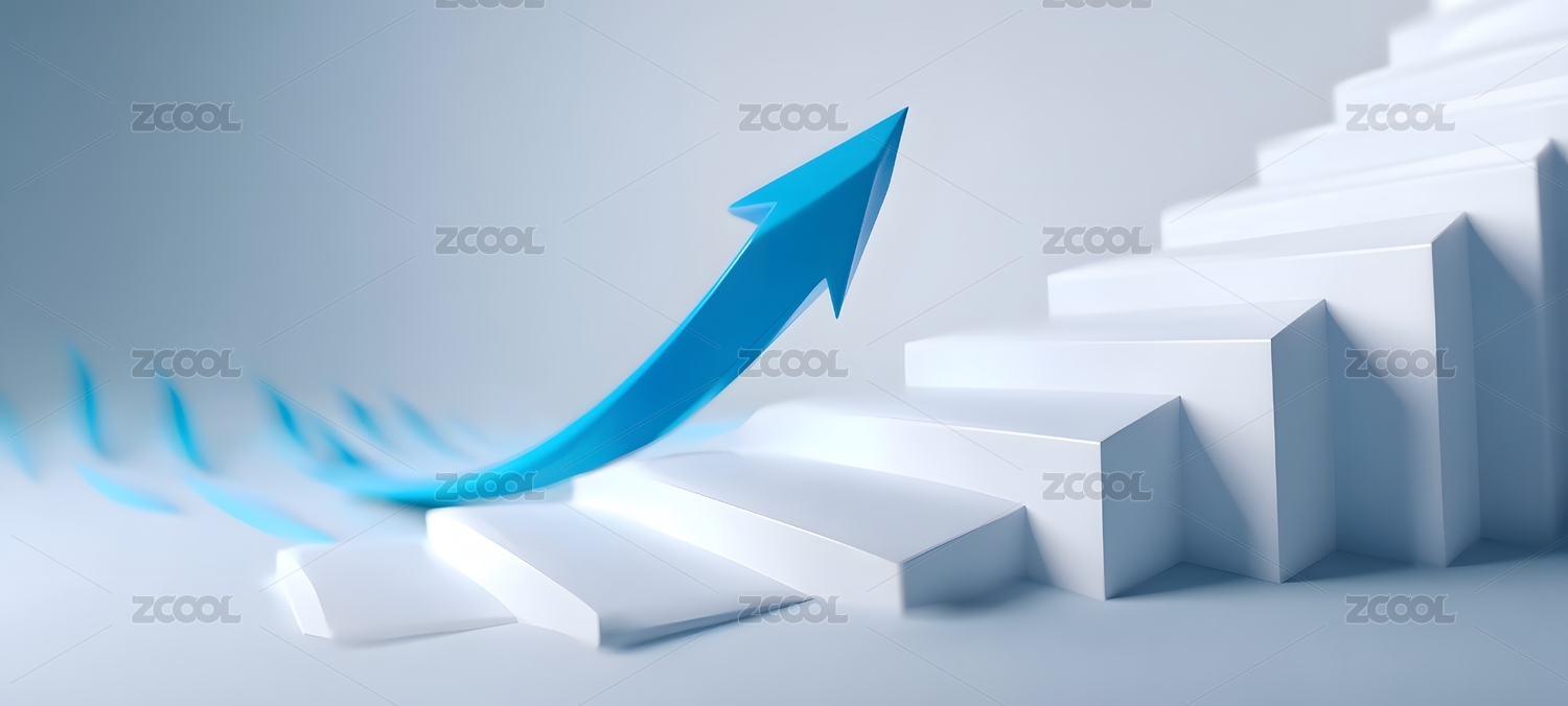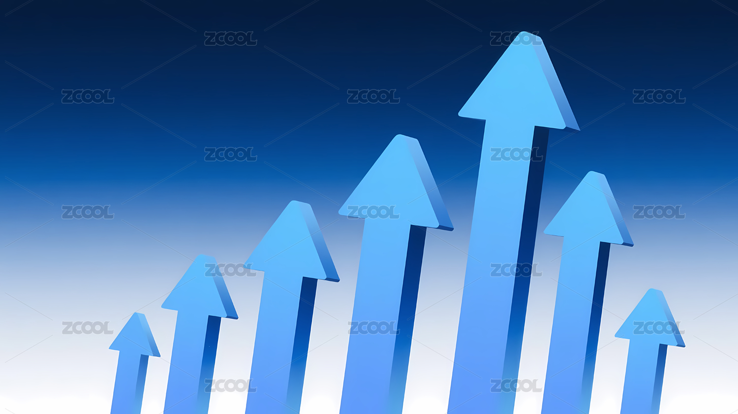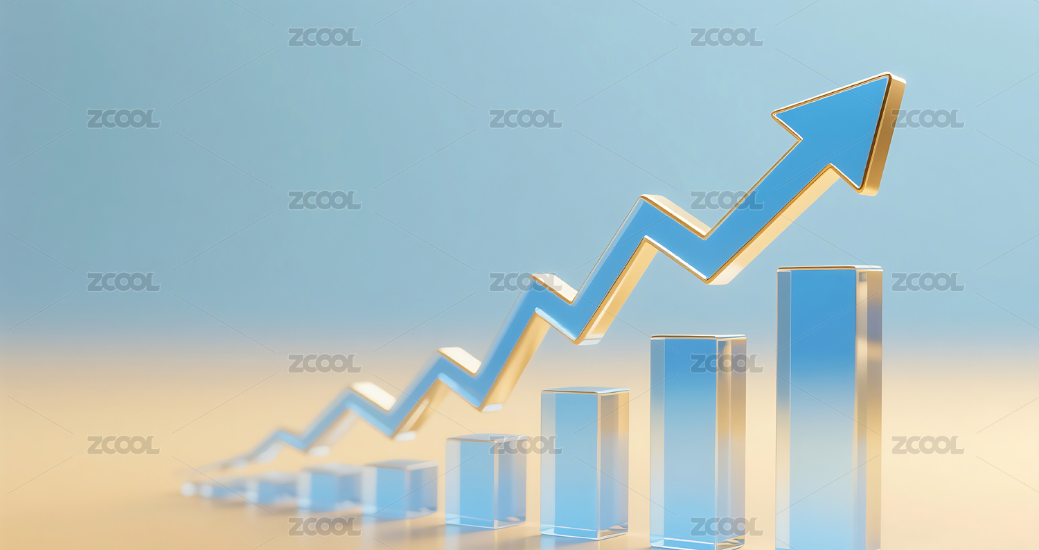 蓝色渐变玻璃质感金融柱状图增长箭头背景