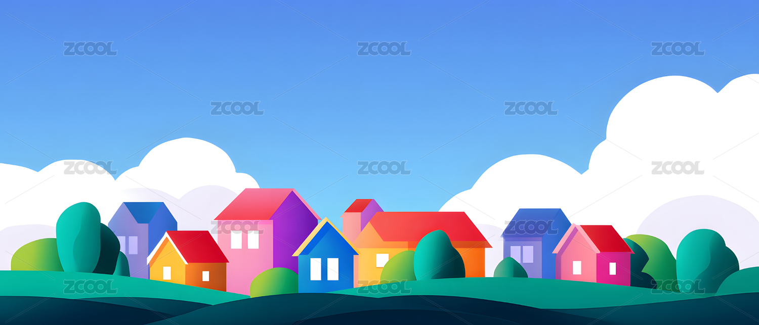 背景,街道,插画,楼房,梦幻,清新,温馨,banner,卡通
