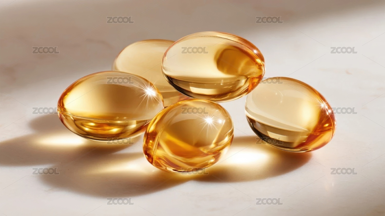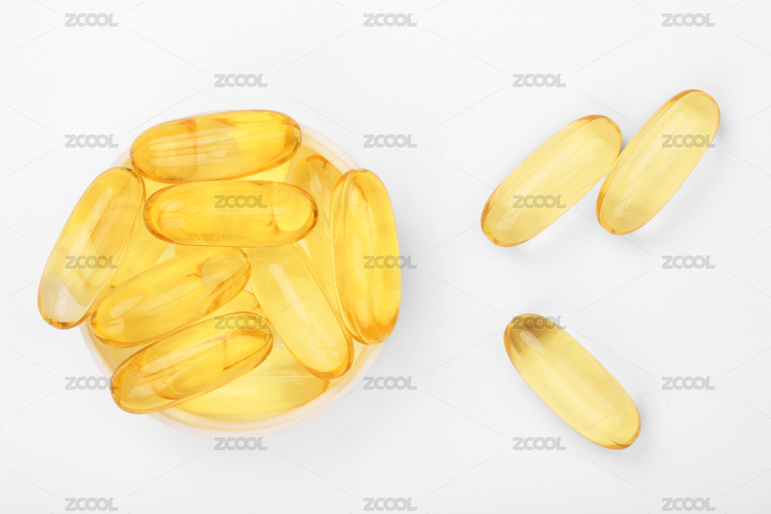 金黄色的欧米茄鱼油软胶囊,营养医疗健康类产品