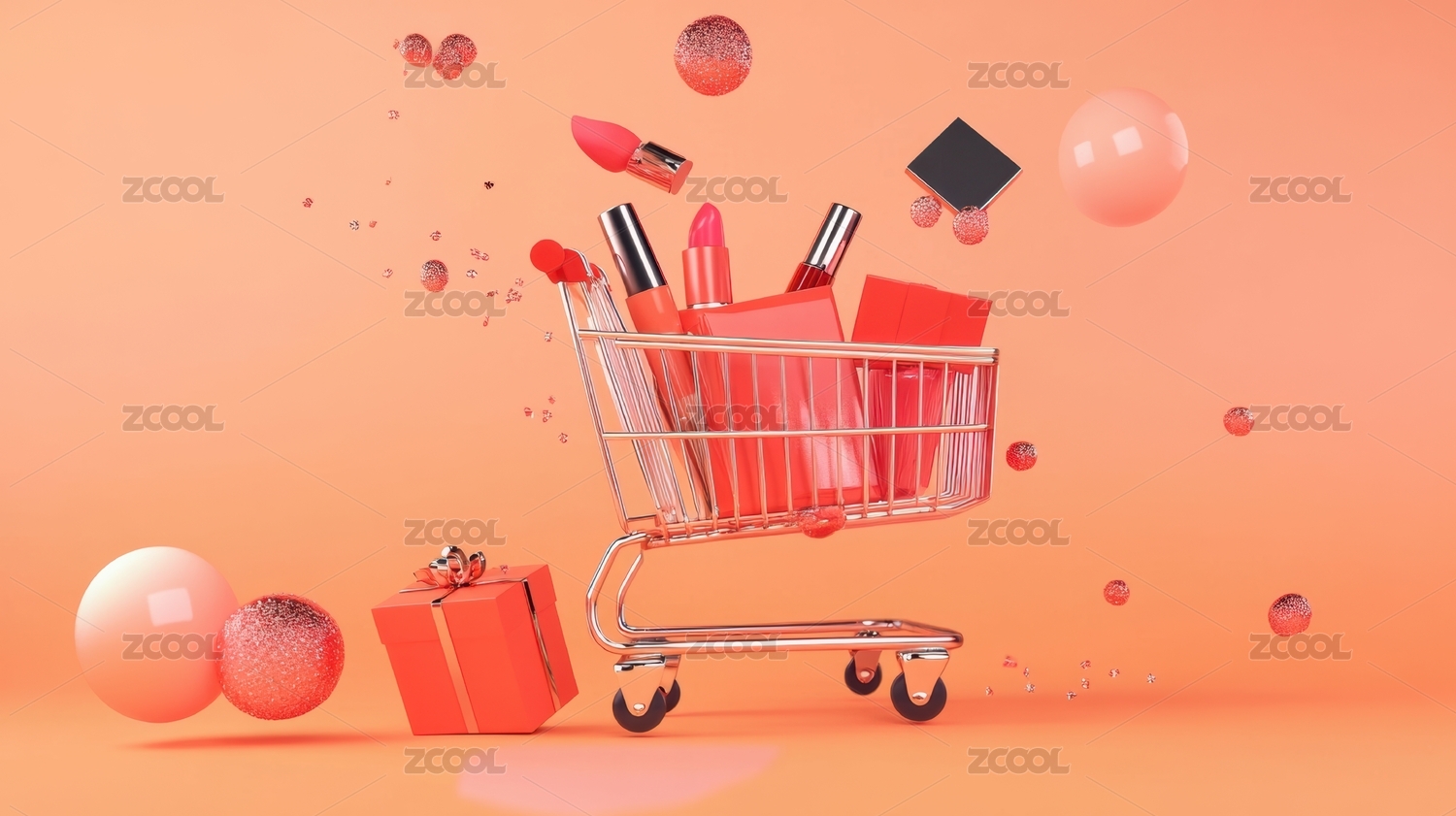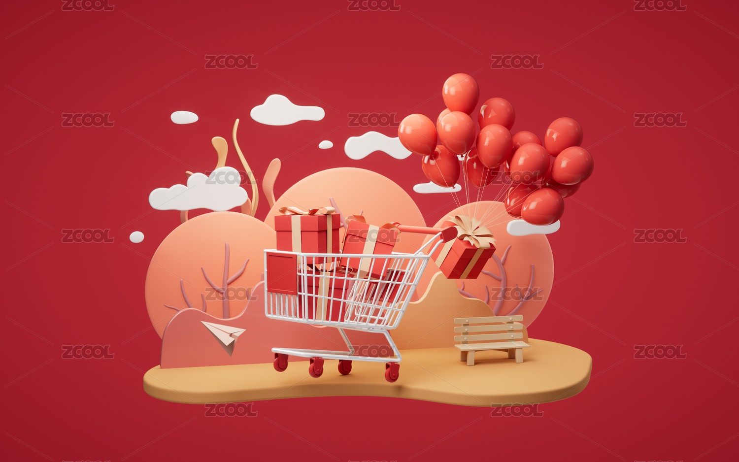3D,插画,卡通,商业,消费,购物,背景,红色,庆祝,中国风