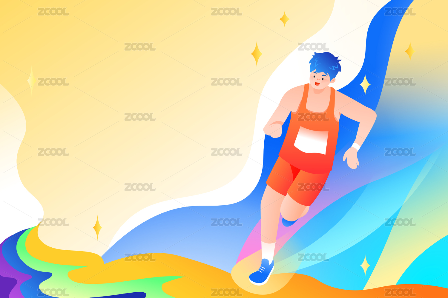 夏天人物清晨跑步运动健身健康减肥锻炼插画