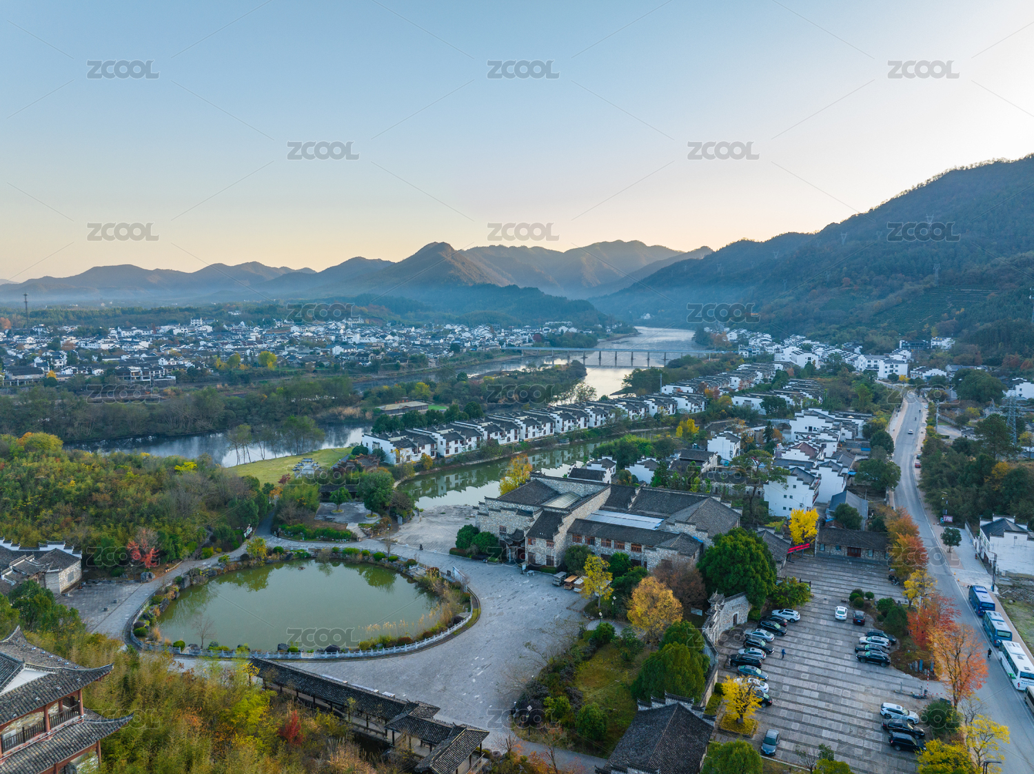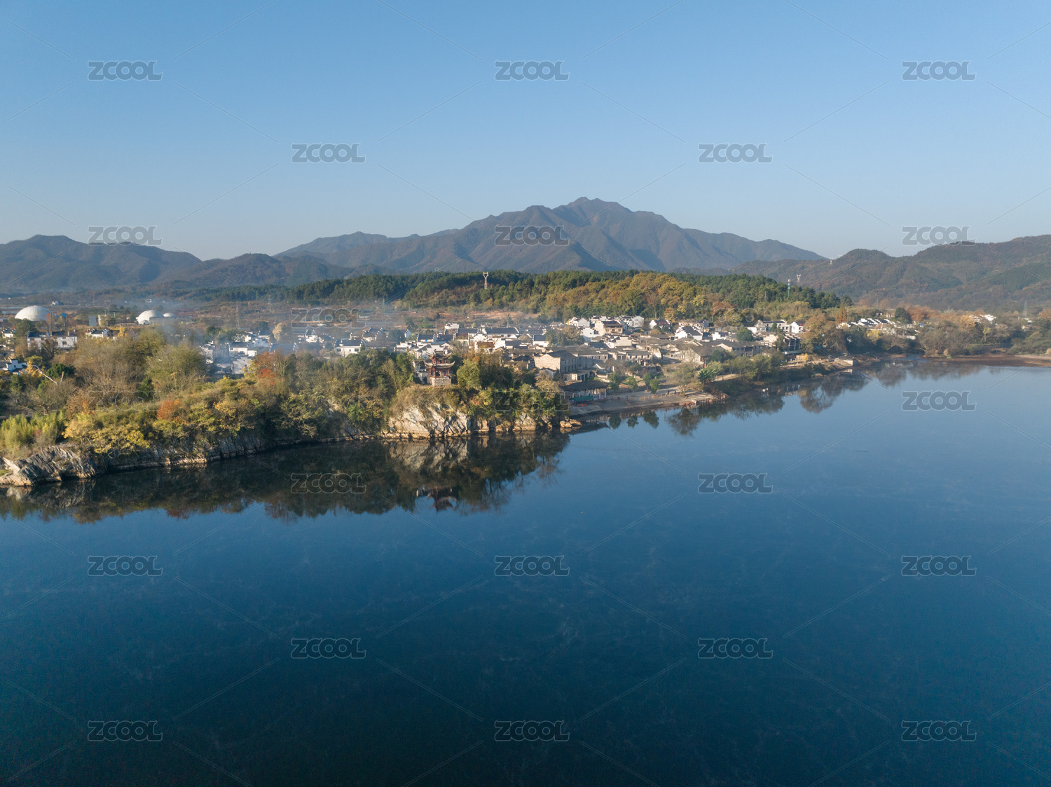 航拍安徽宣城泾县桃花潭风景区老街村庄