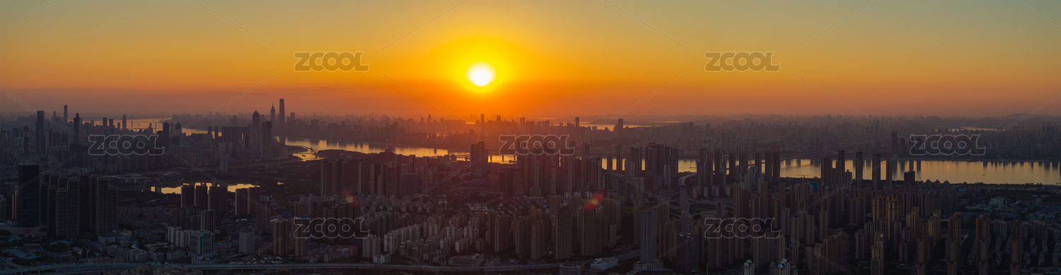 武汉夏日城市地标天际线日出风光