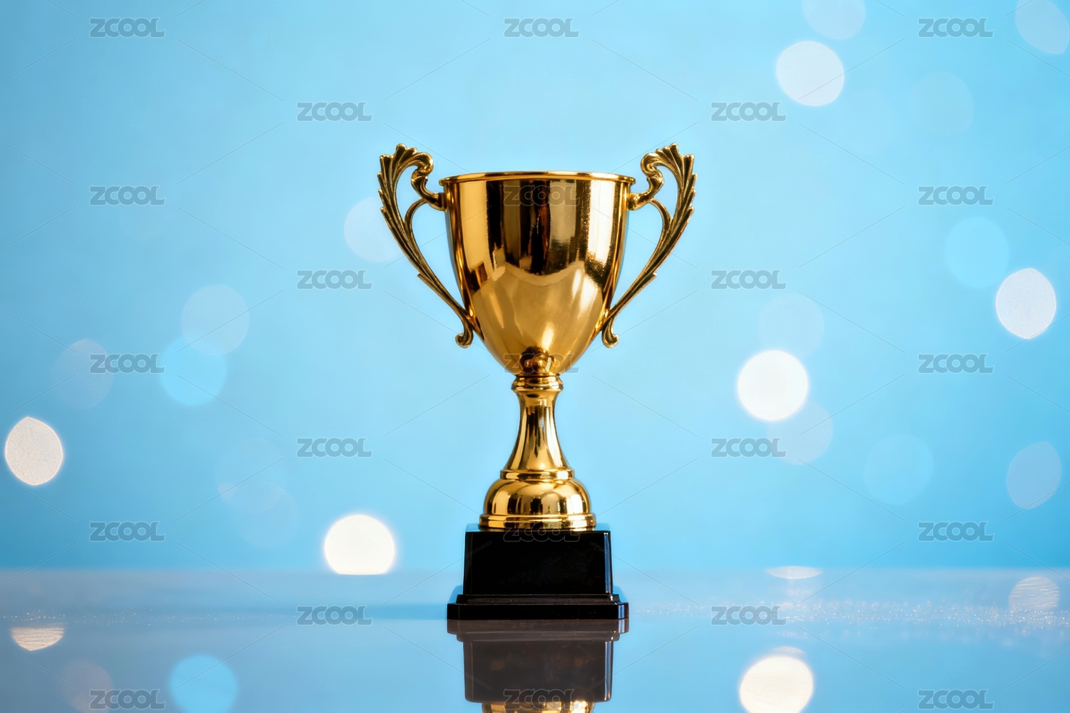 金牌奖杯竞赛奖杯在抽象模糊的散景背景