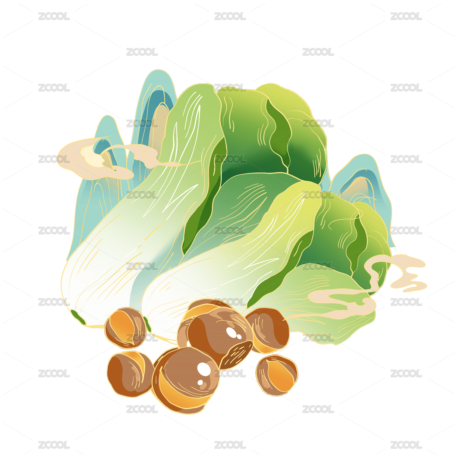 卡通餐饮食材青菜板栗插画