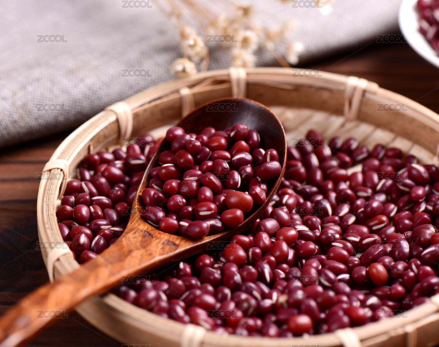 红豆,五谷,粗粮,粮食,美食,麦穗,木桌,木纹,竹筐,木托盘