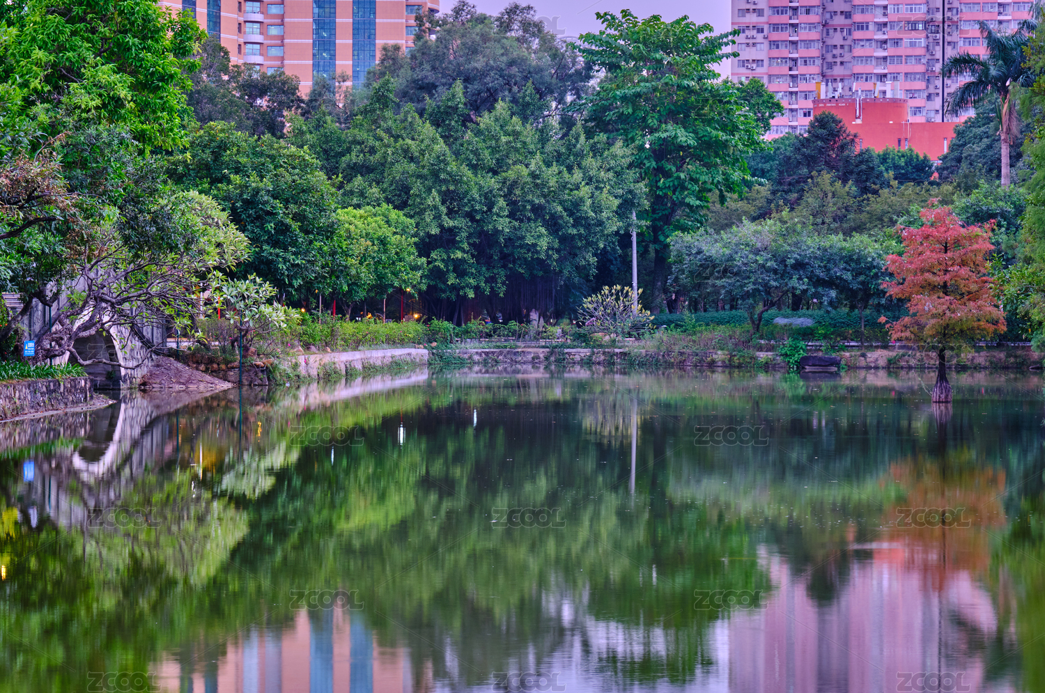 中国广西南宁青秀山公园夏天绿色的植物和湖面