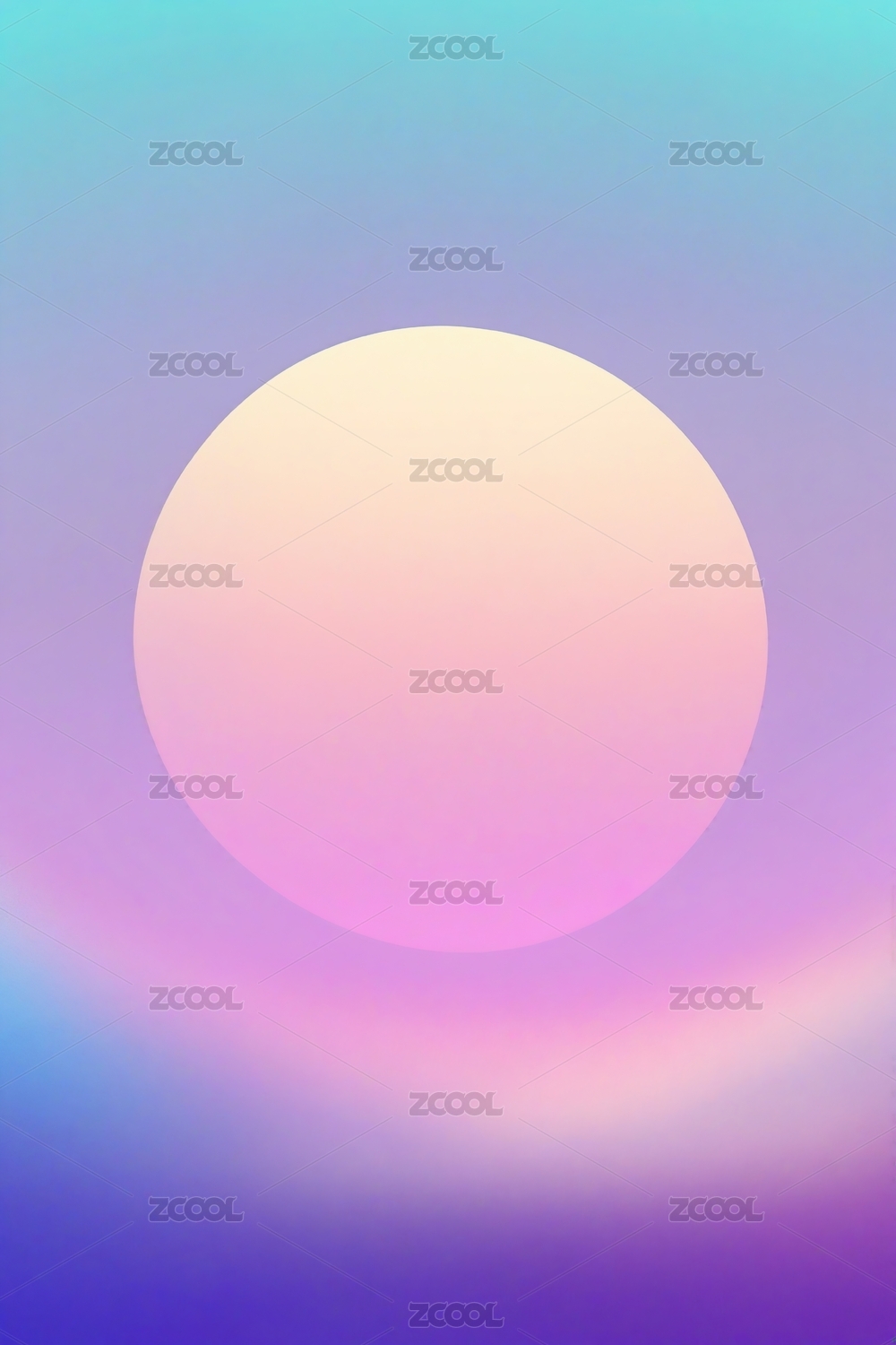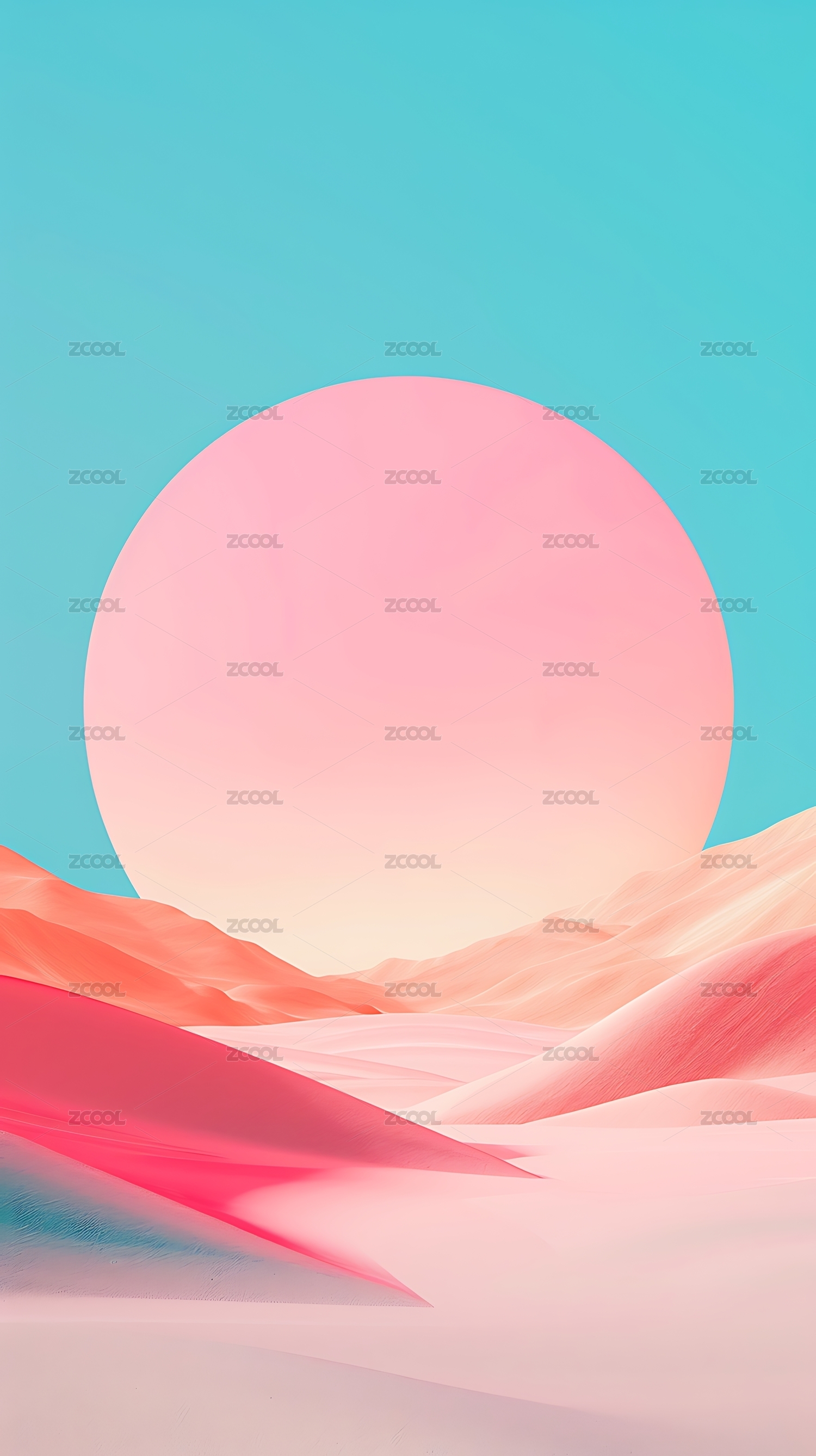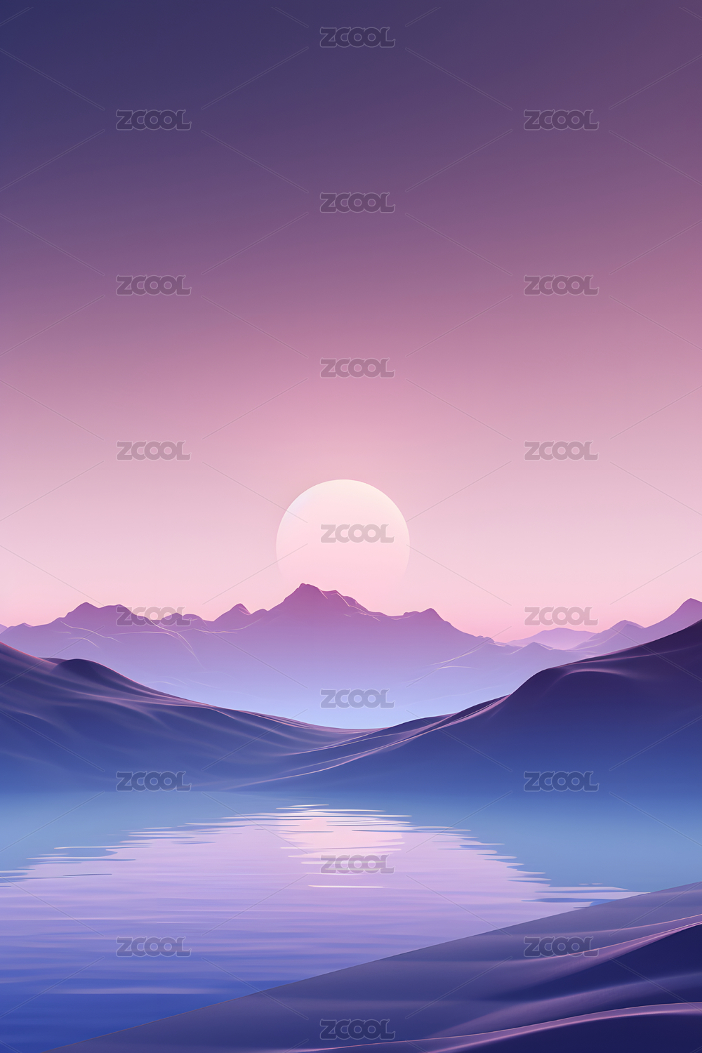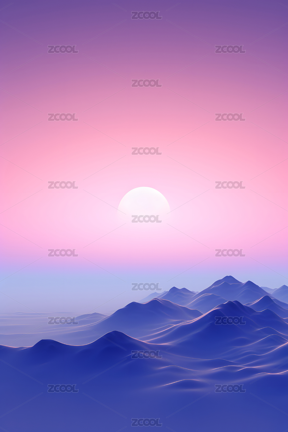 巨大的圆形太阳悬挂在渐变的粉色和紫色天空