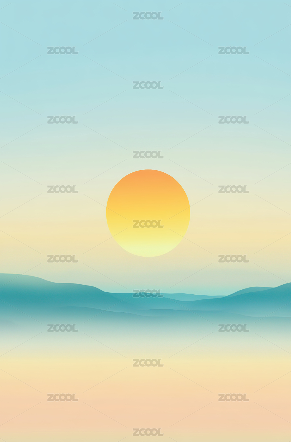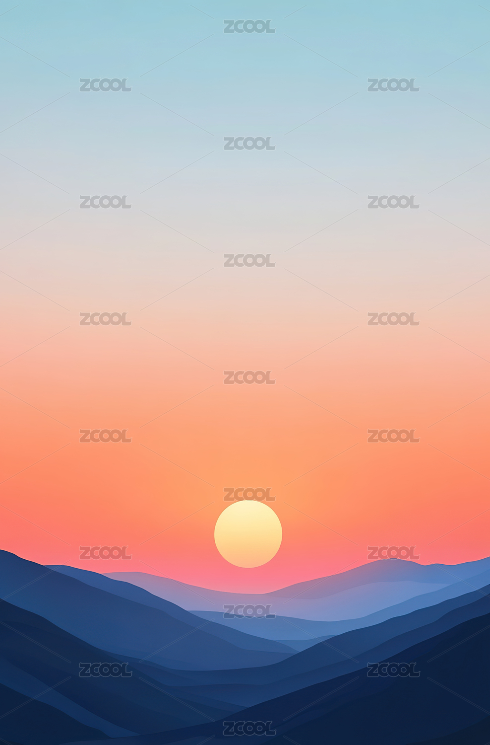 山脉风景太阳插画海报背景