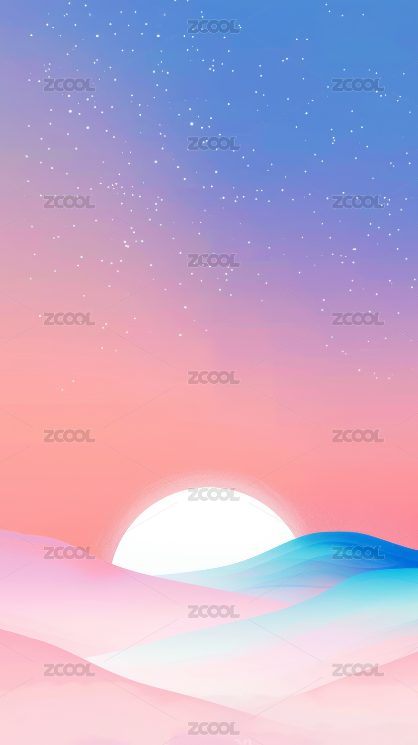 粉蓝渐变的星空和月亮,极简主义梦幻背景
