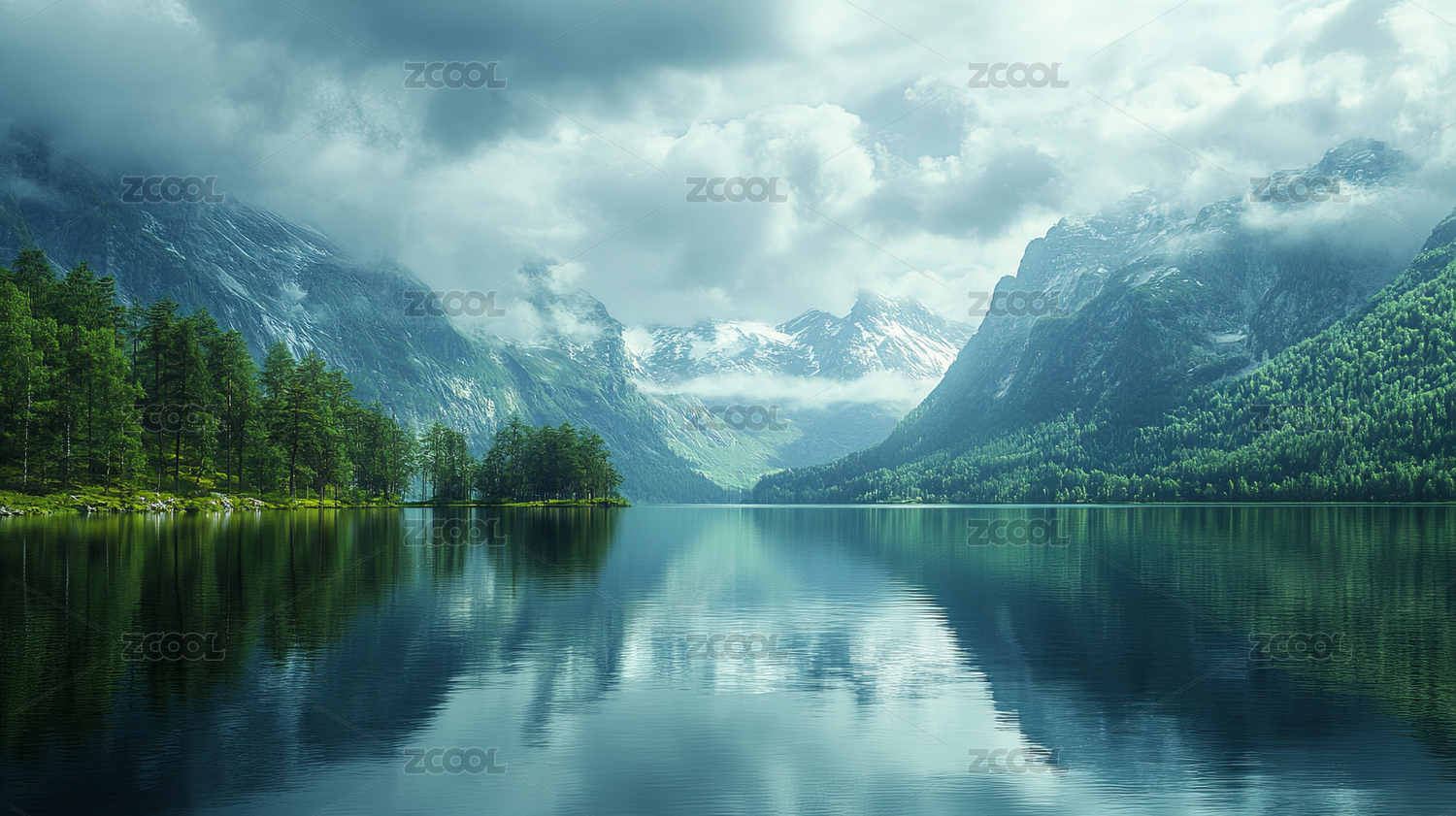 阴天高山湖水森林