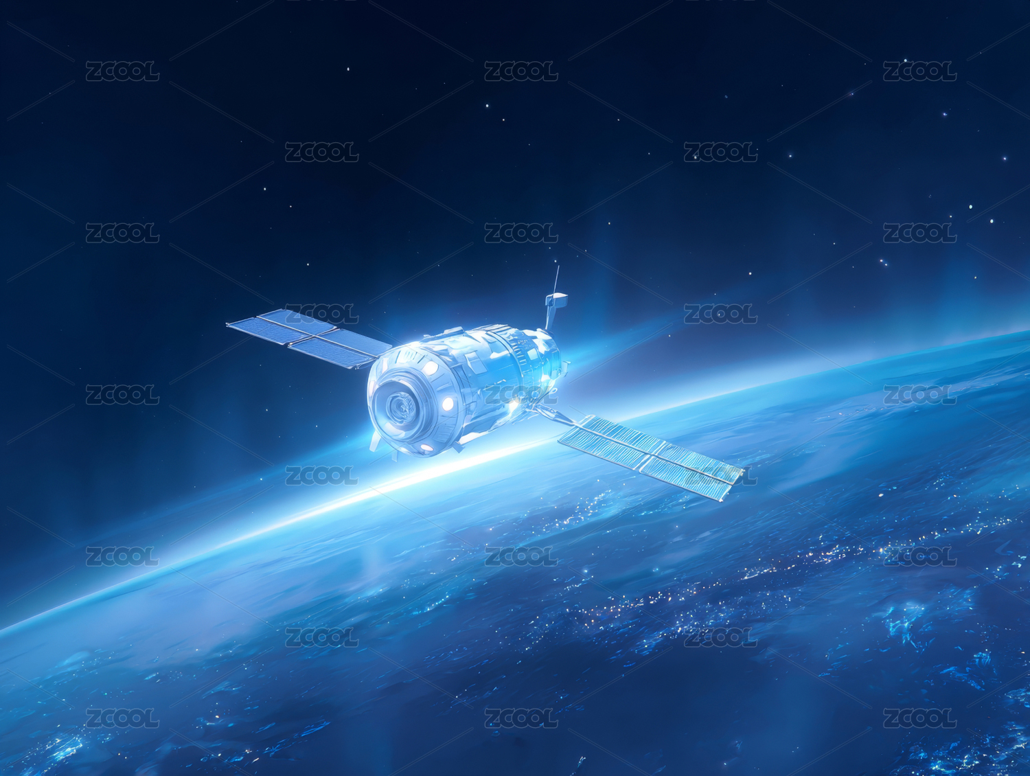 插画,背景,蓝色,夜空,星球,太空,飞船,科技,探索,科学