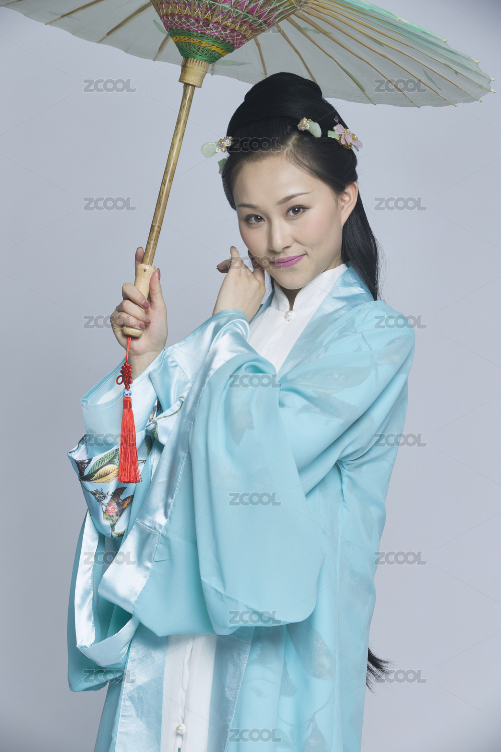 撑着油纸伞的汉服少女(汉服影棚拍摄)
