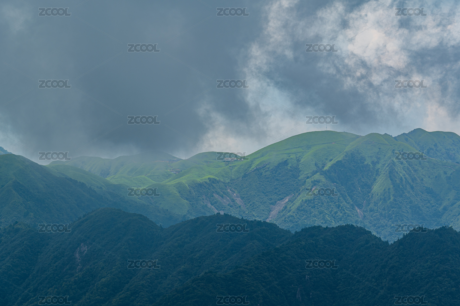 武功山羊狮慕景区云雾缭绕的翠绿山峦