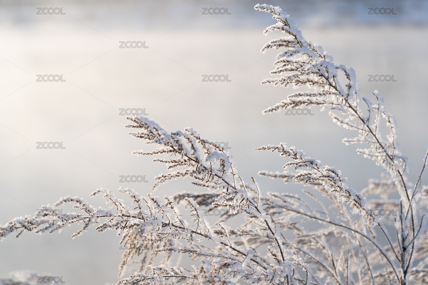 在寒冷的冬日清晨户外草叶上结成的冰凌