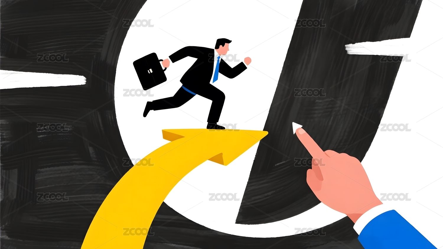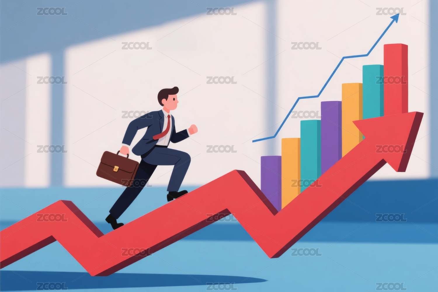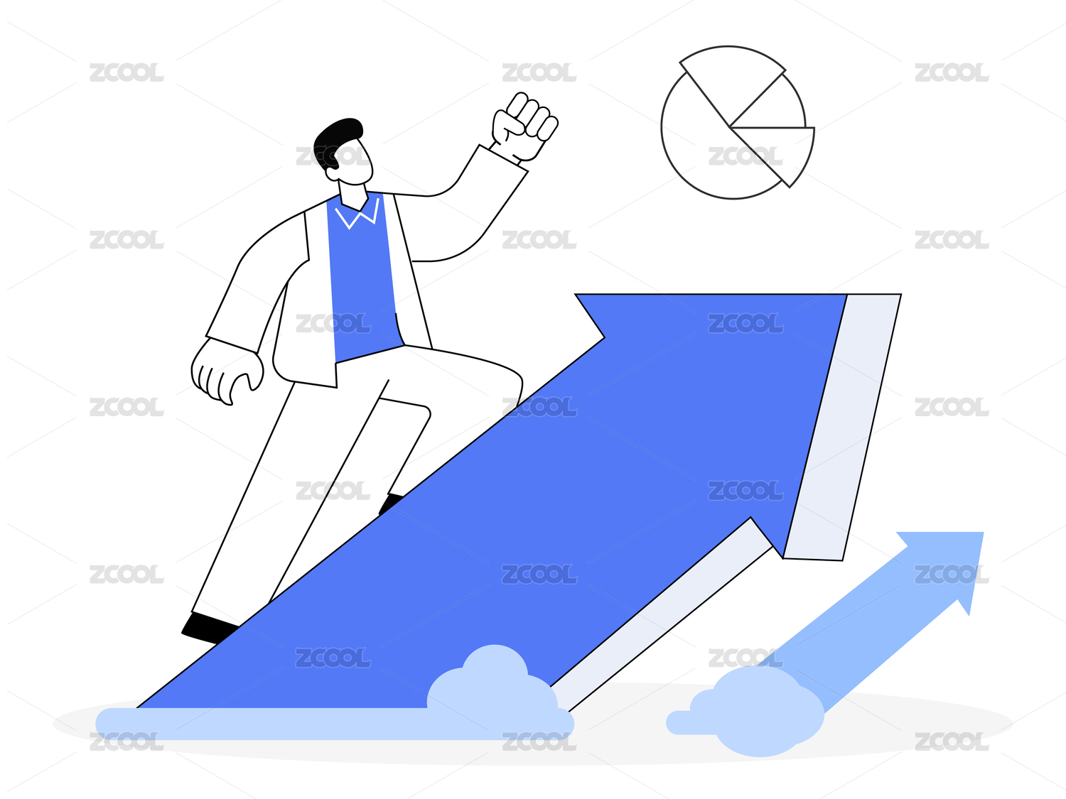商人顺着箭头向上快速奔跑的扁平简约插画