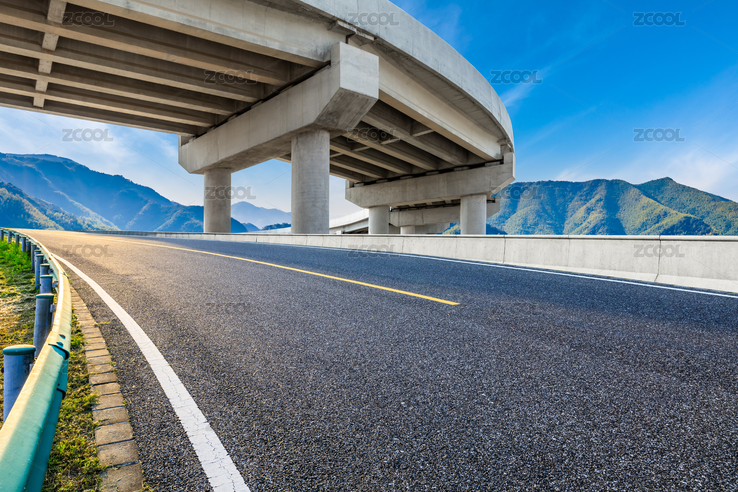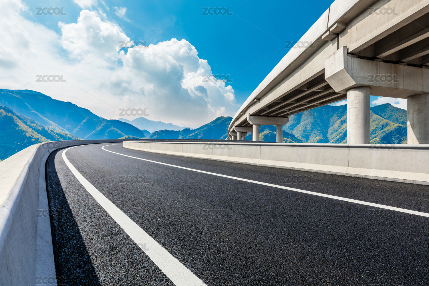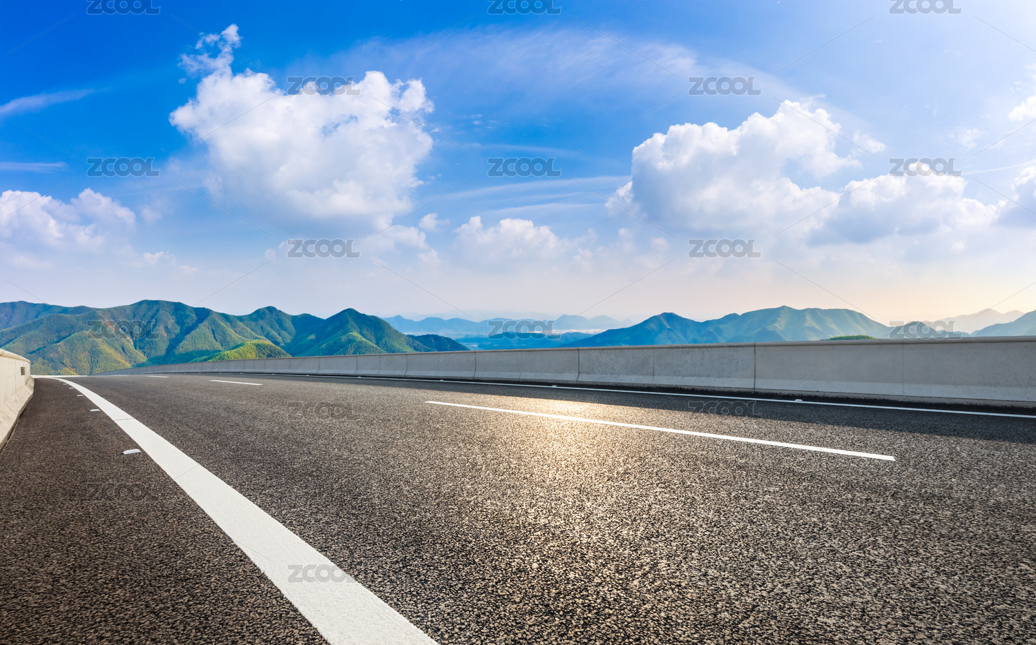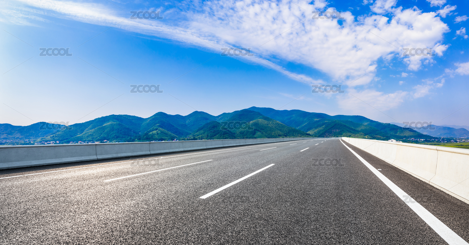 春季晴朗的蓝天下空的沥青道路和山脉风光
