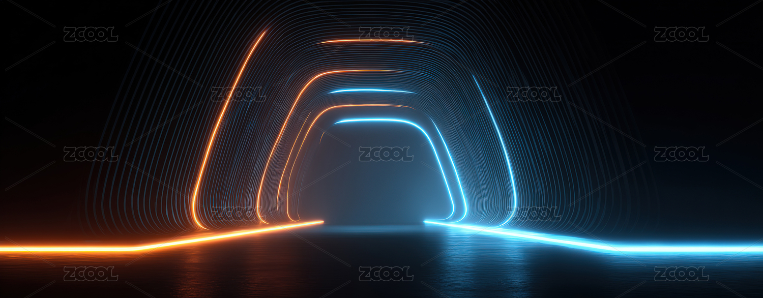 三维,灯光,霓虹灯,通道,发光的,不规则,发亮的,背景,插图,概念