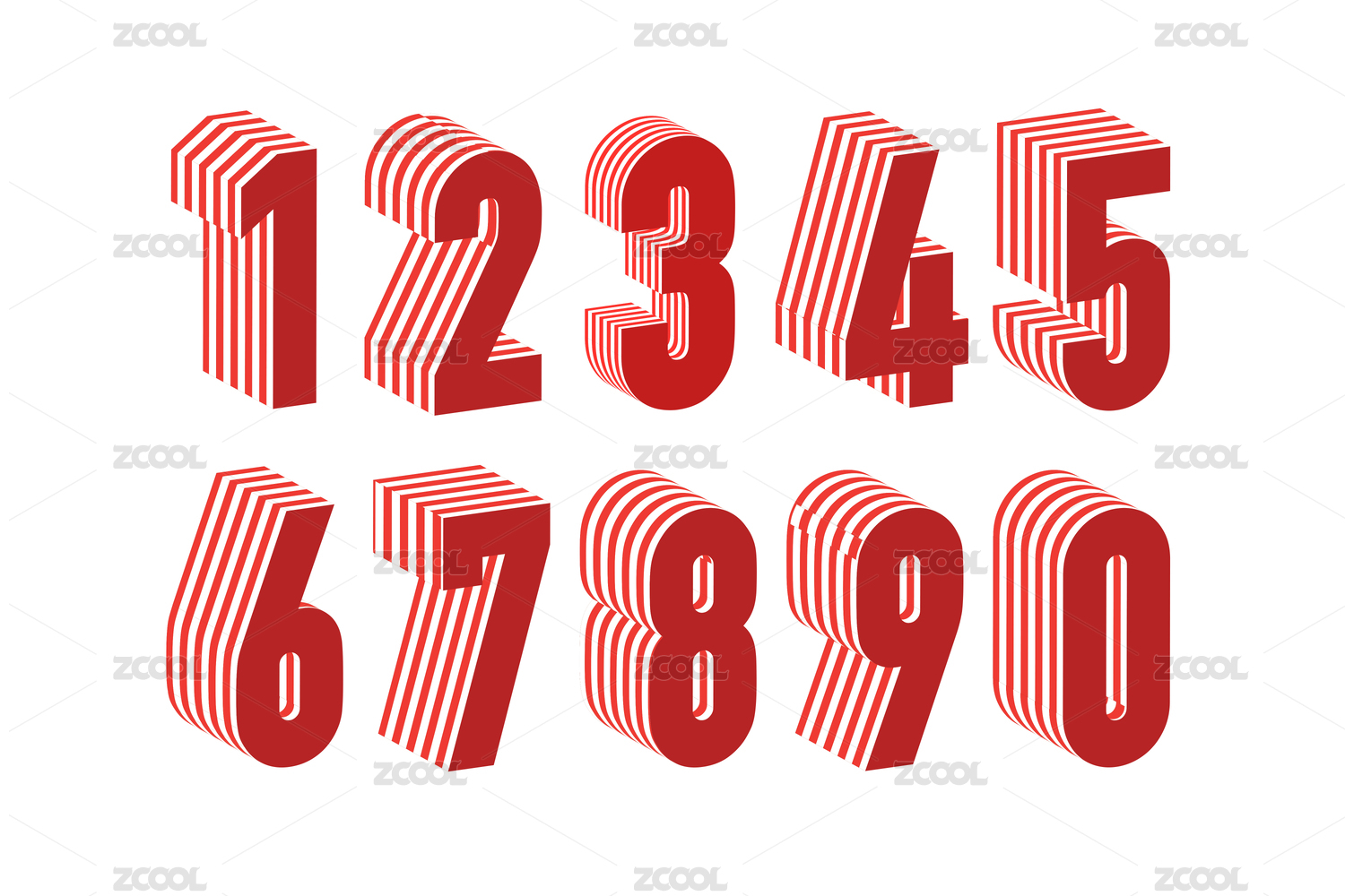 3d糖果色阿拉伯数字0至9彩色三维模型
