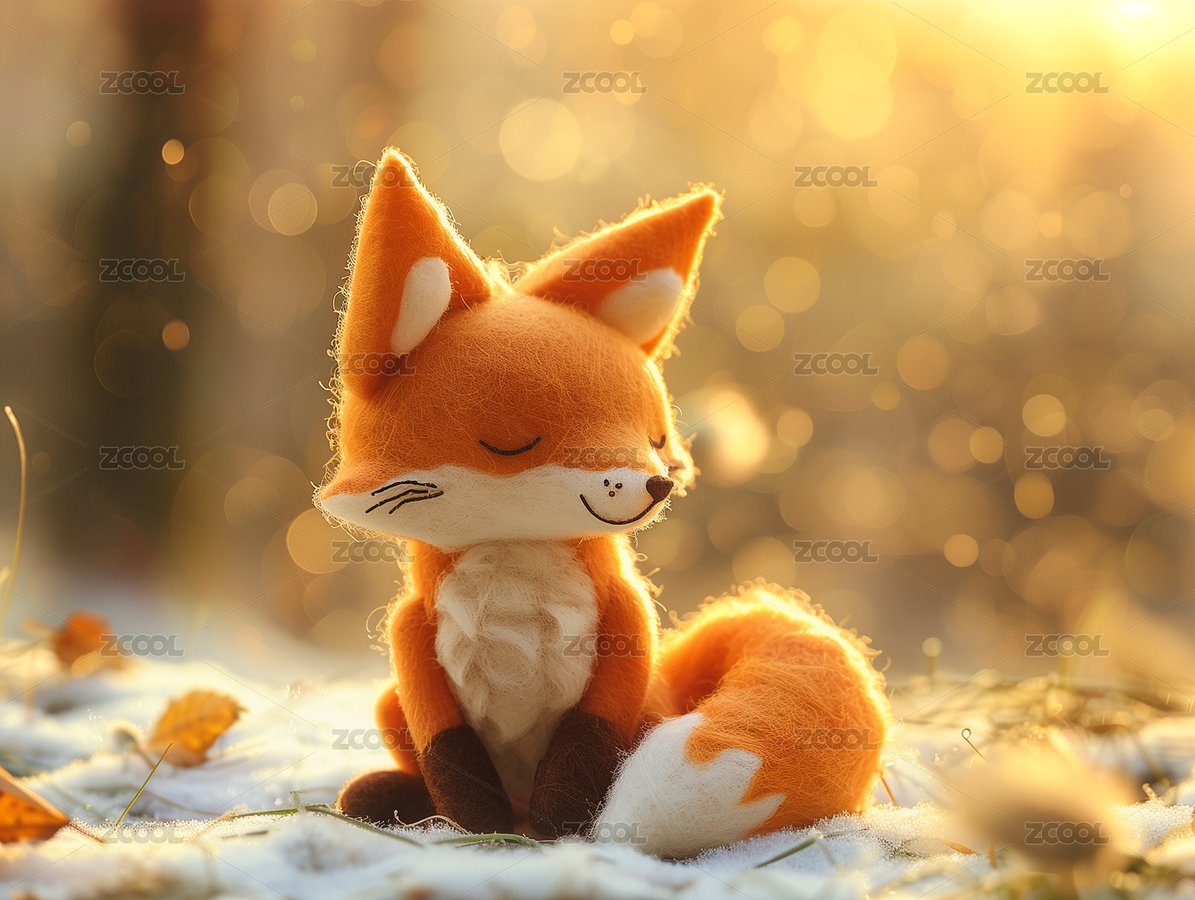 狐狸可爱唯美野生动物3D卡通插画壁纸