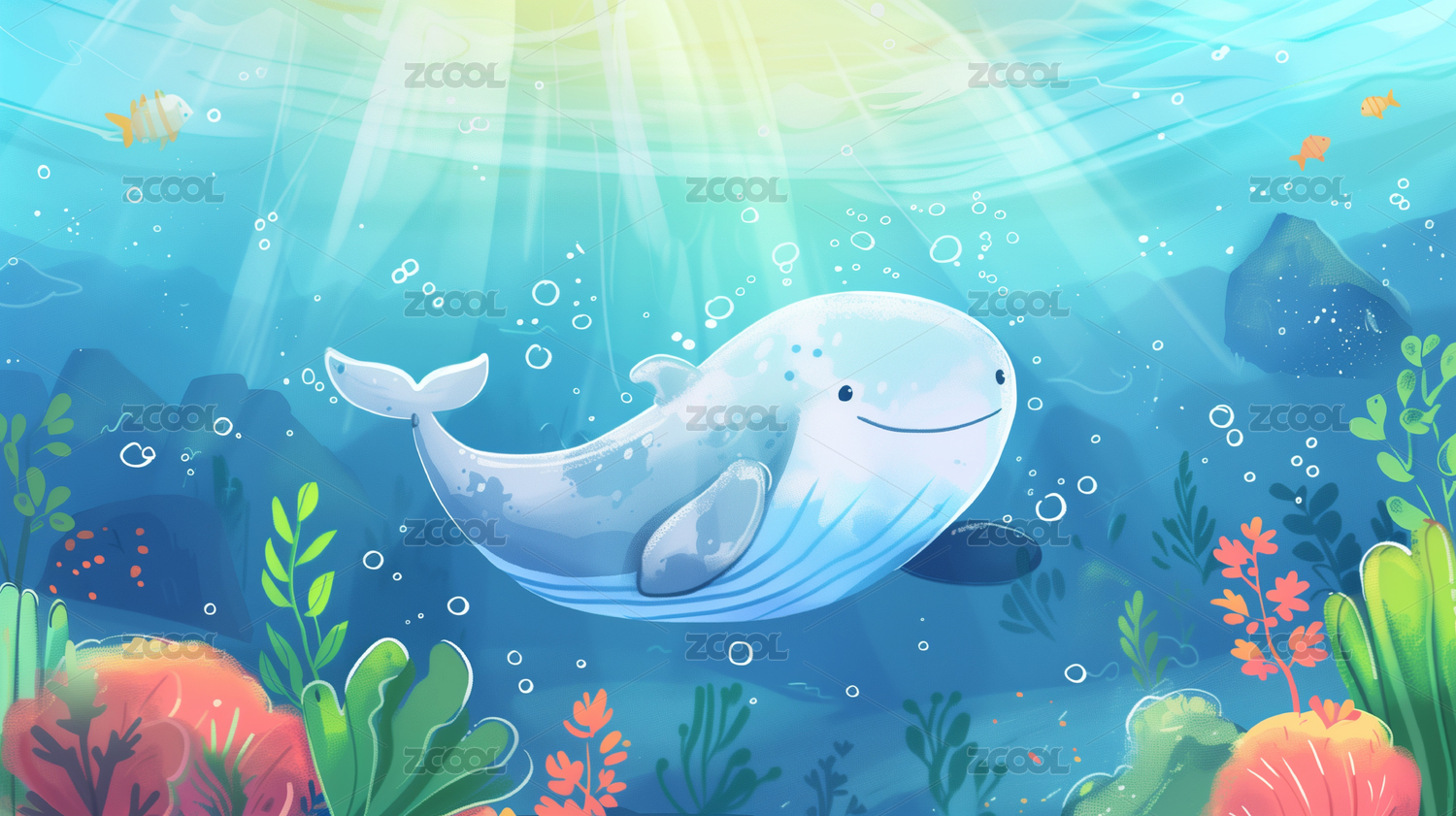 HEYYTGF2020,海豚,海洋,海底,海底世界,珊瑚,水草,微笑,蓝色,红色