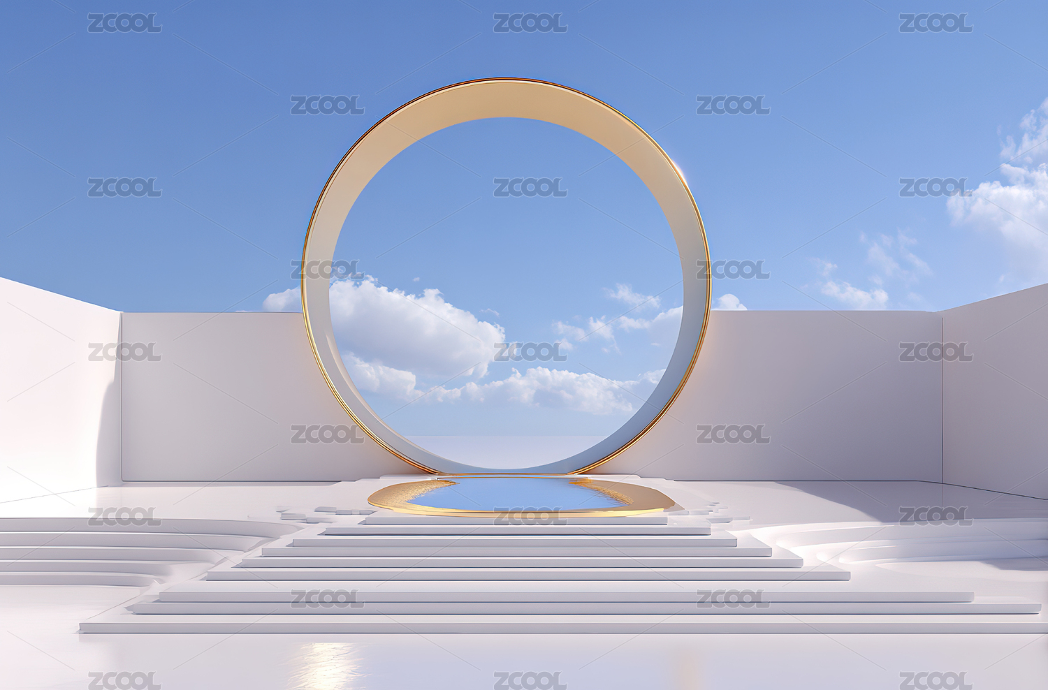 蓝色天空白云展示台海报背景
