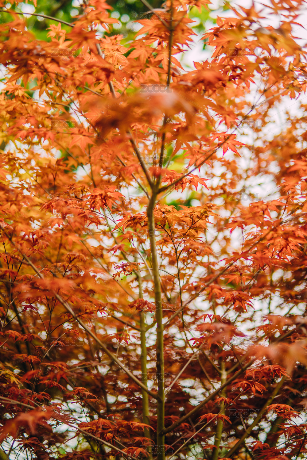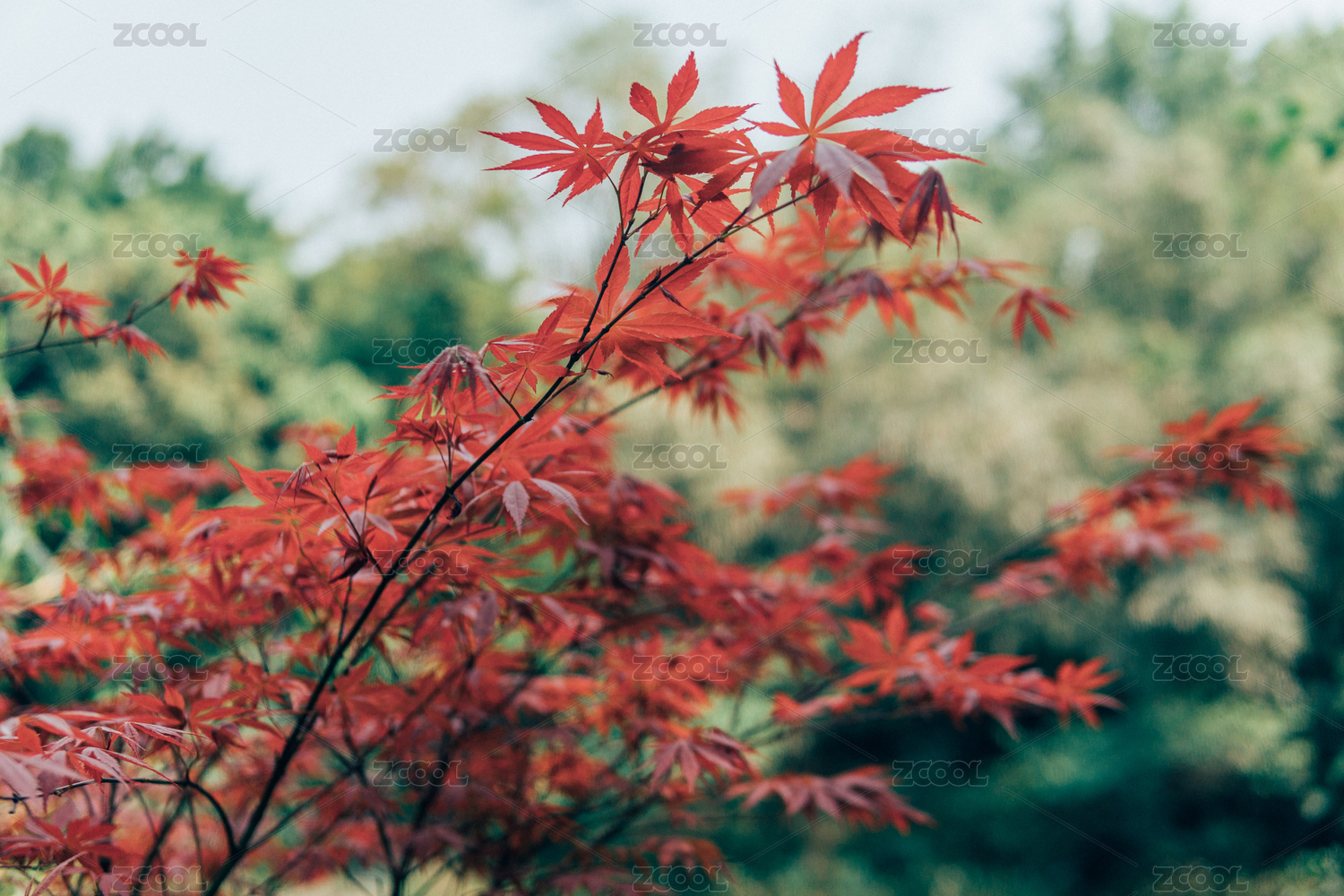 春天公园里的绚丽红枫鲜艳红色枫叶