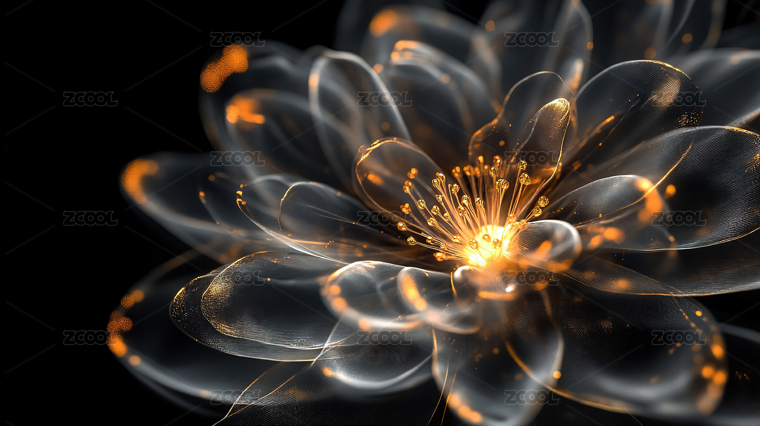 金色花卉特写3d抽象花朵PPT主视觉背景