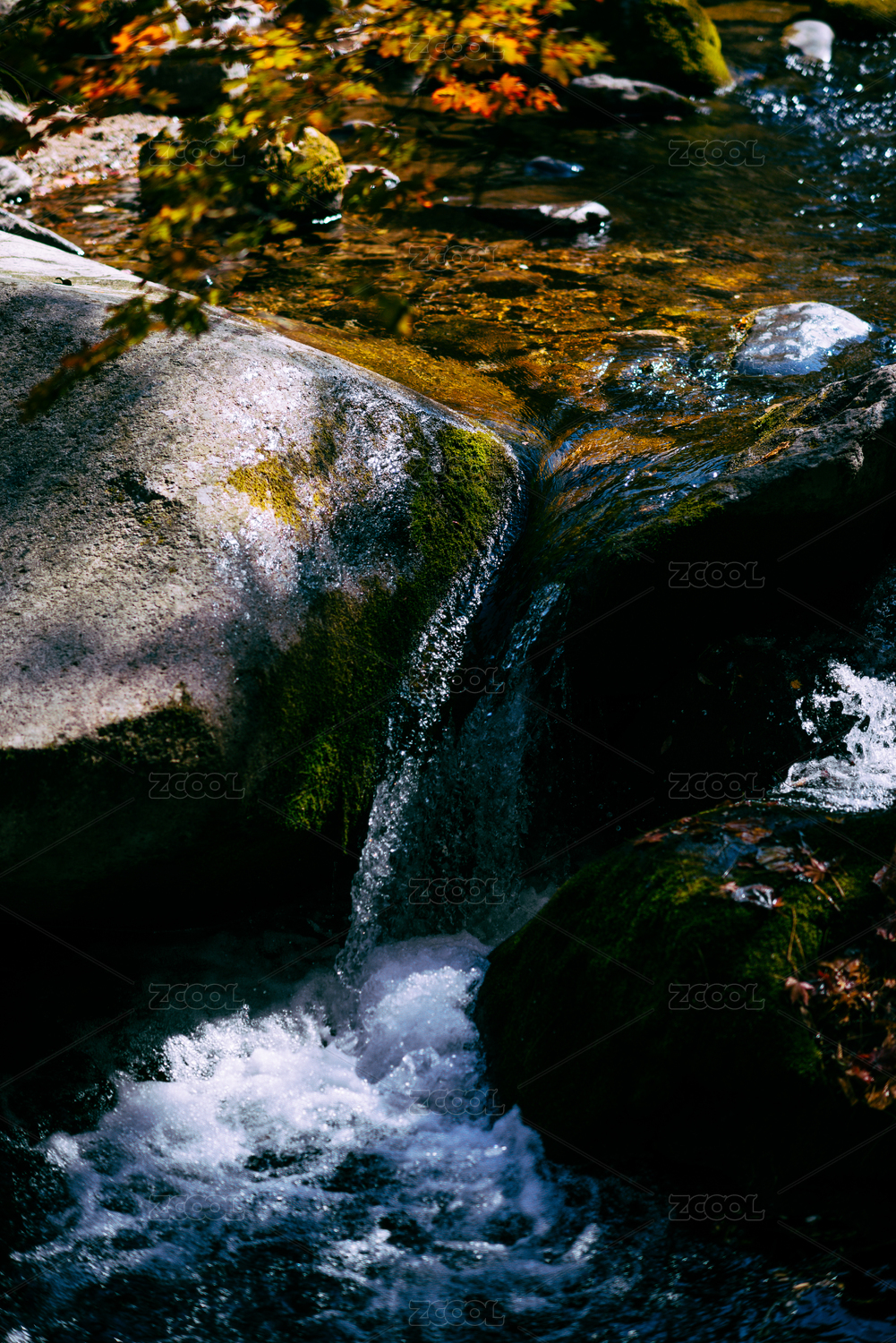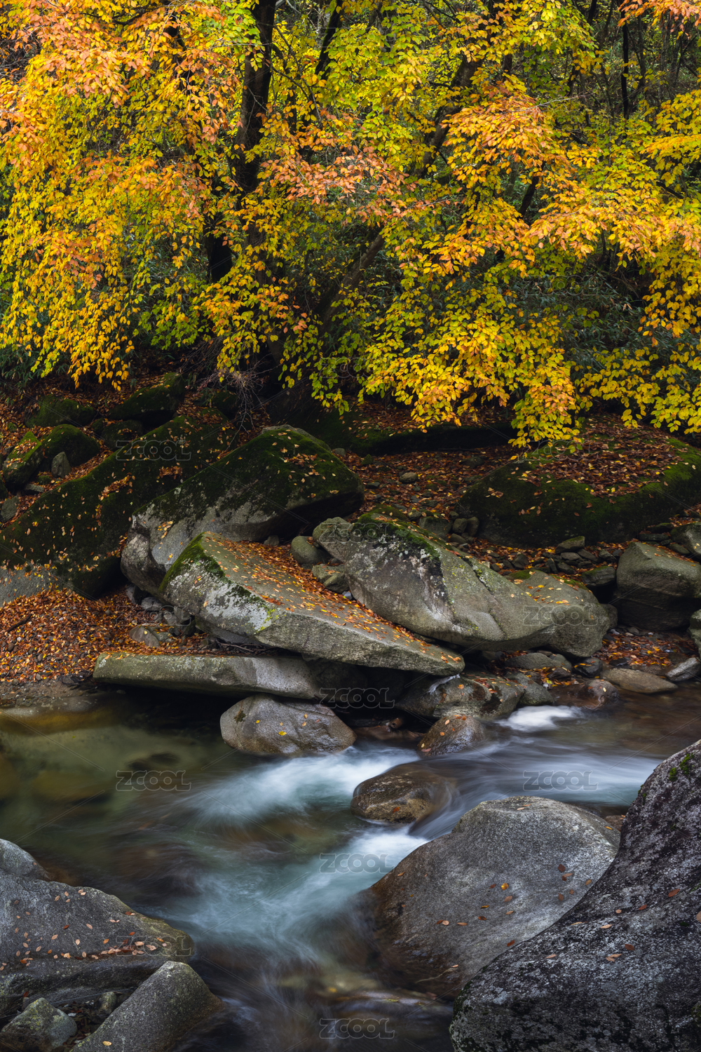 昭通彝良小草坝秋天溪流与落叶自然景观