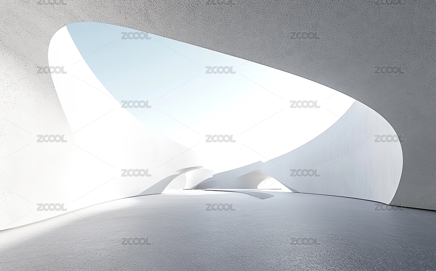 白色灯光流线型极简抽象建筑空间广场地面背