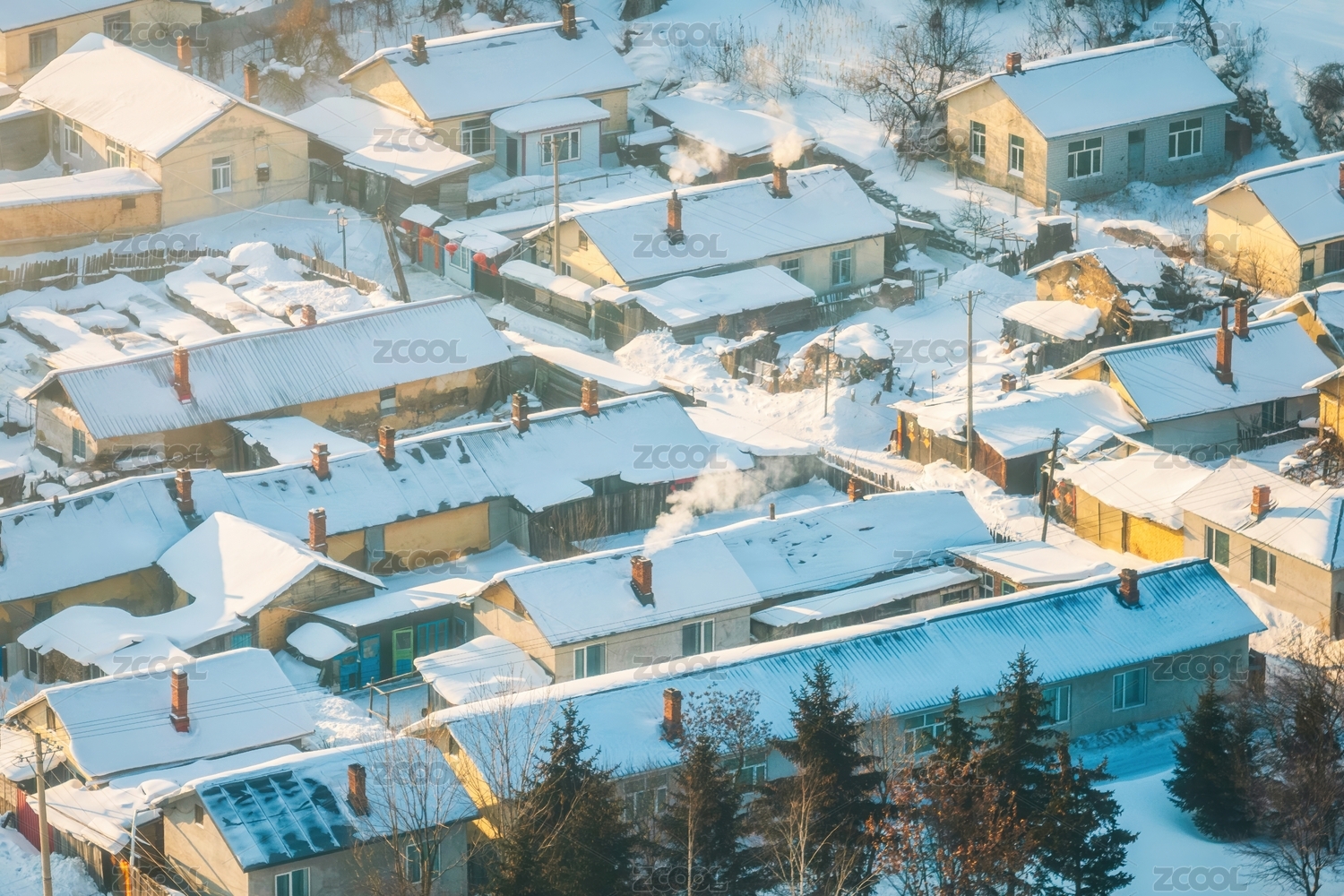 冬天中国呼伦贝尔傍晚的额尔古纳市楼房建筑