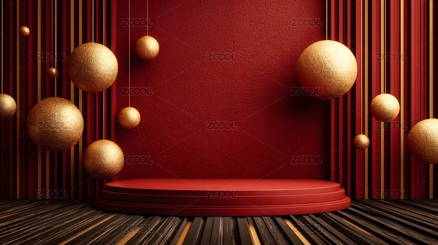 红色背景金色球体舞台设计