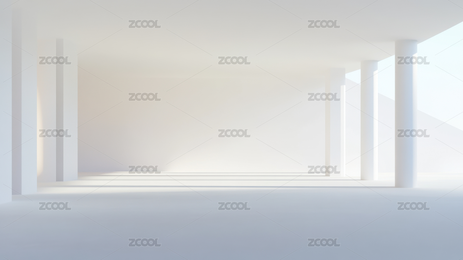 白色抽象几何建筑室内场景3D渲染