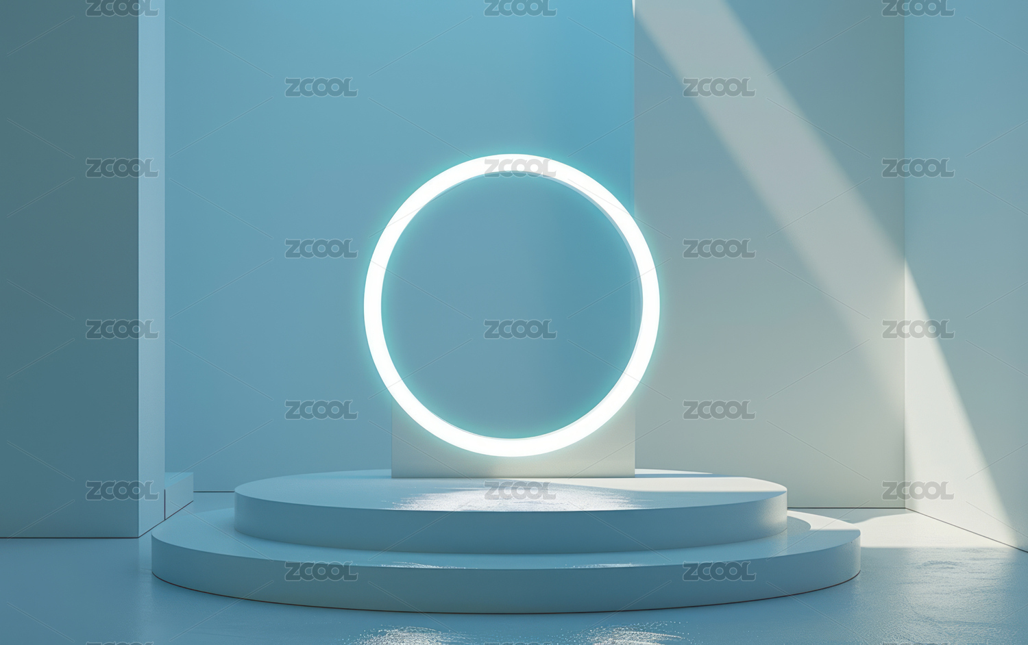 蓝色光环环绕的圆形平台
