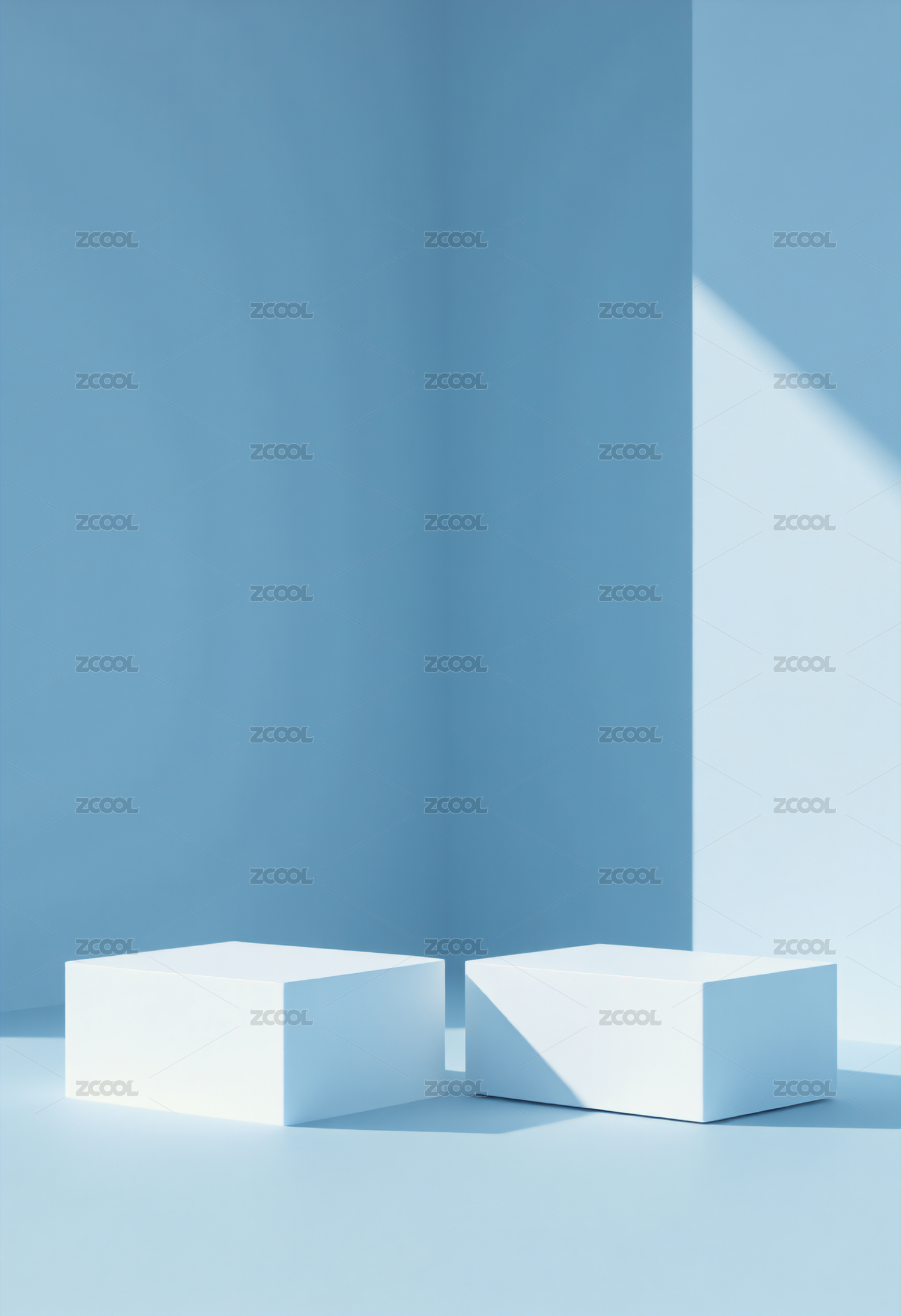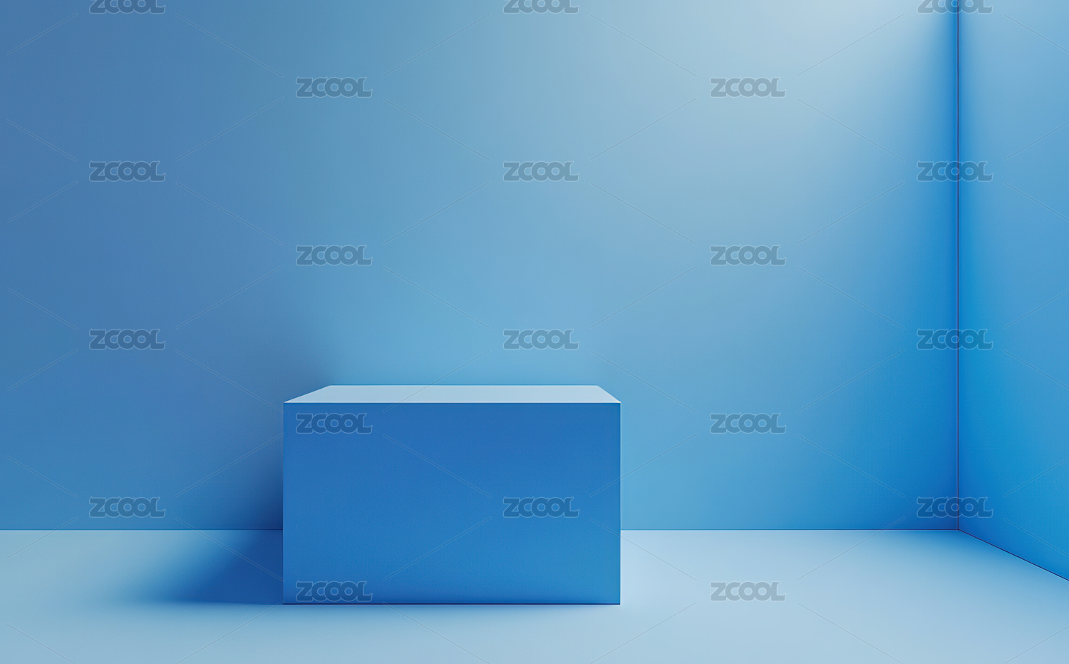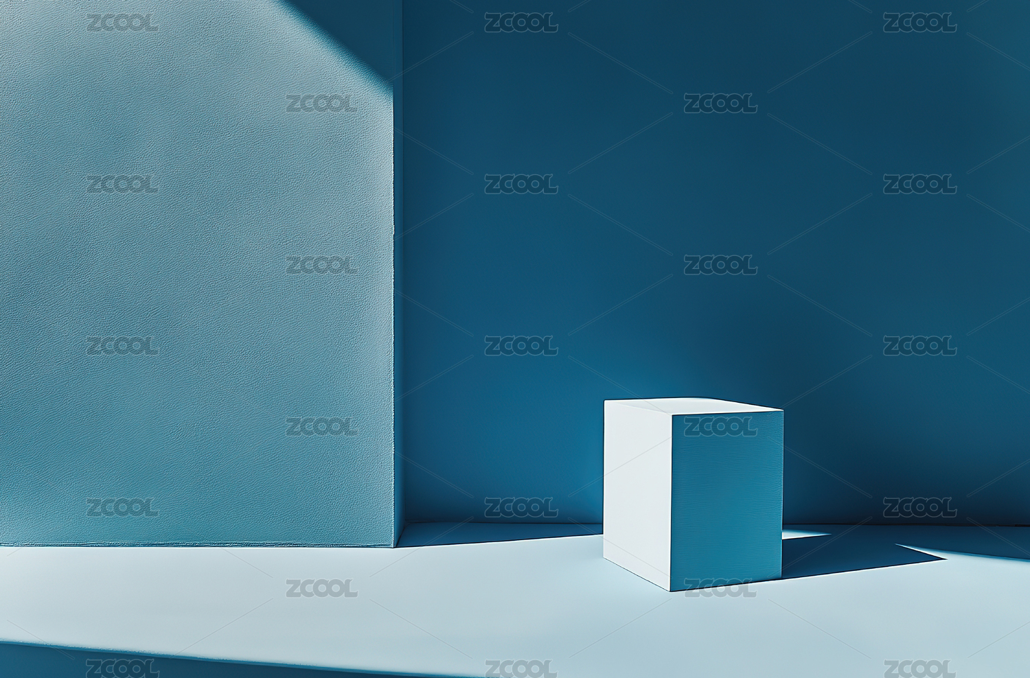 简约蓝色立方体置于光影交错背景中