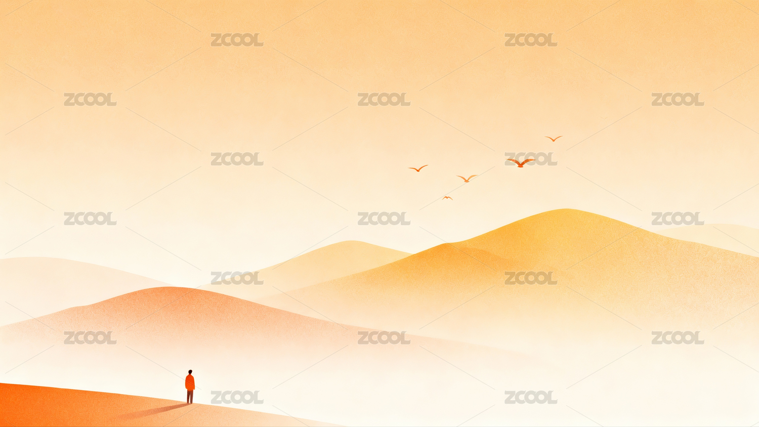 沙漠中孤独行者与飞鸟