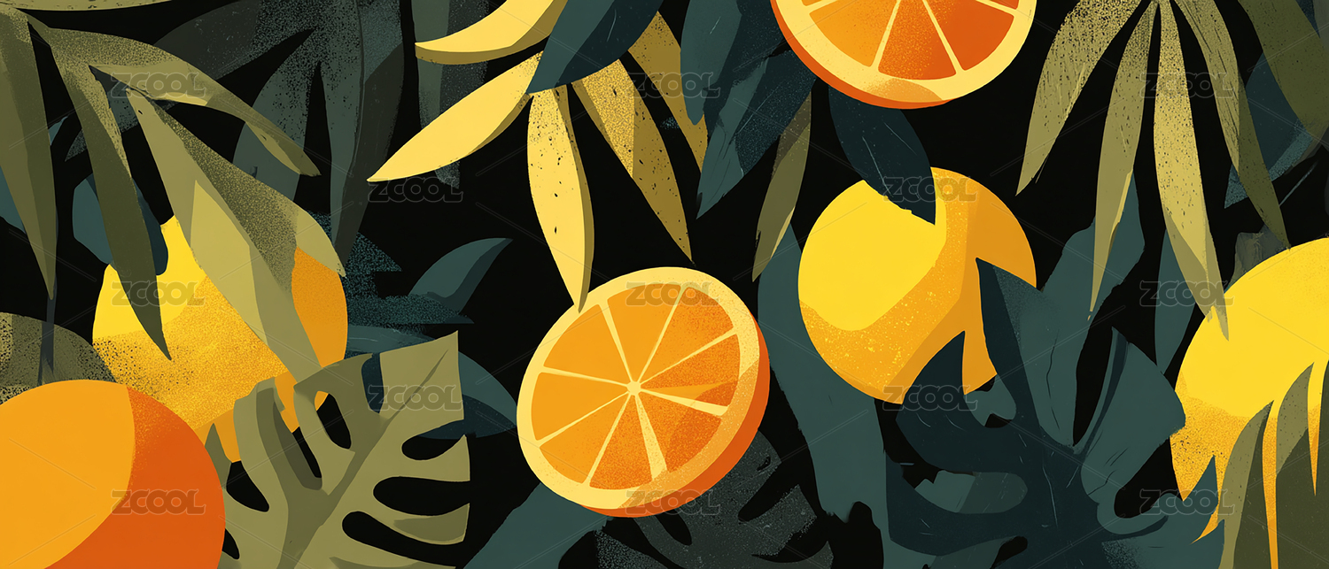 清新柠檬与花朵叶子春天边框卡通插画背景
