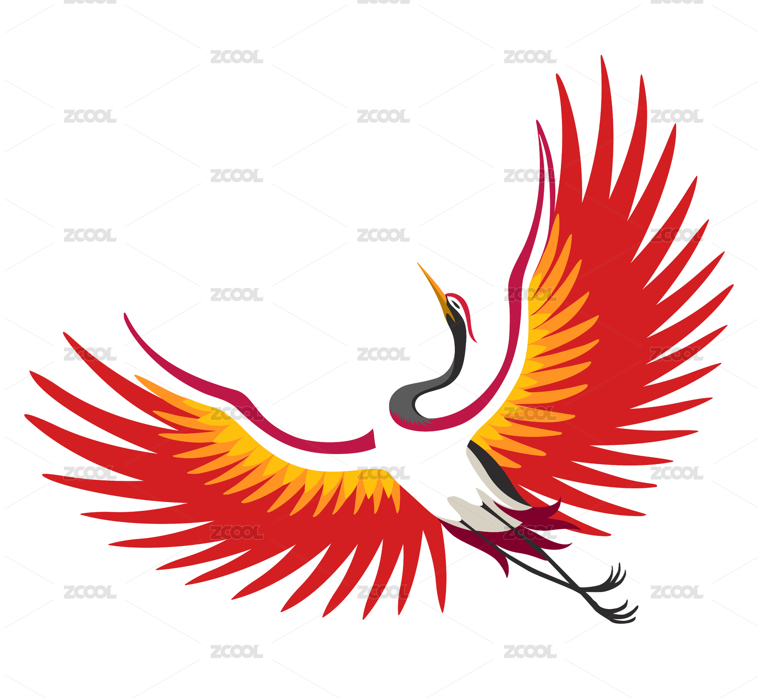 凤凰,标志,插画,吉祥,羽毛,红色,矢量,复古,彩色,线条