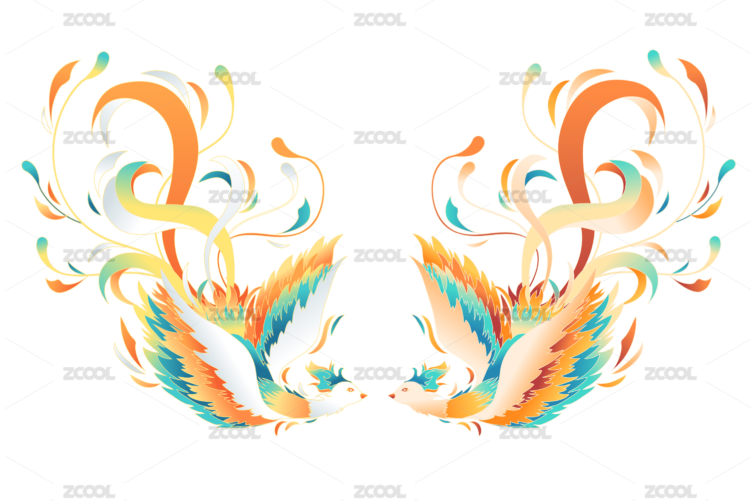 国潮动物凤凰展翅中式传统吉祥纹样色彩明亮