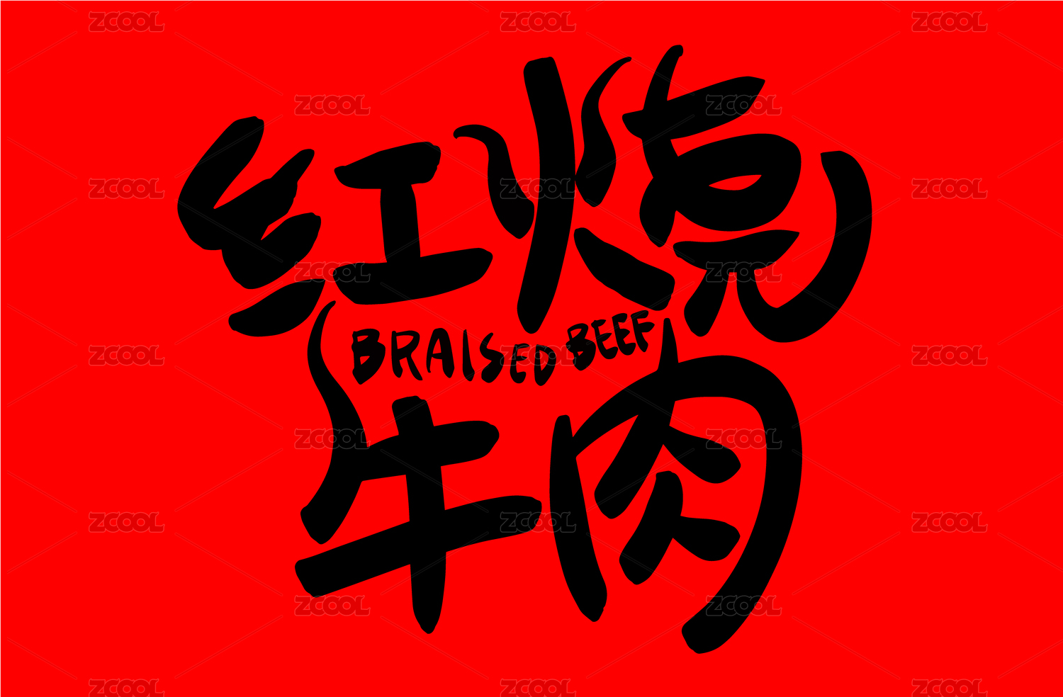 火鞭子牛肉手写书法矢量卡通字体创意设计