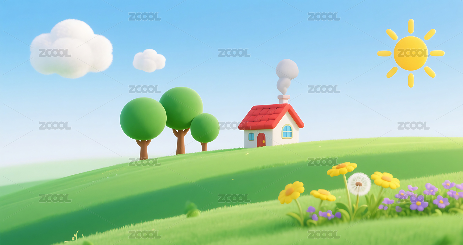 绿色山坡小房子