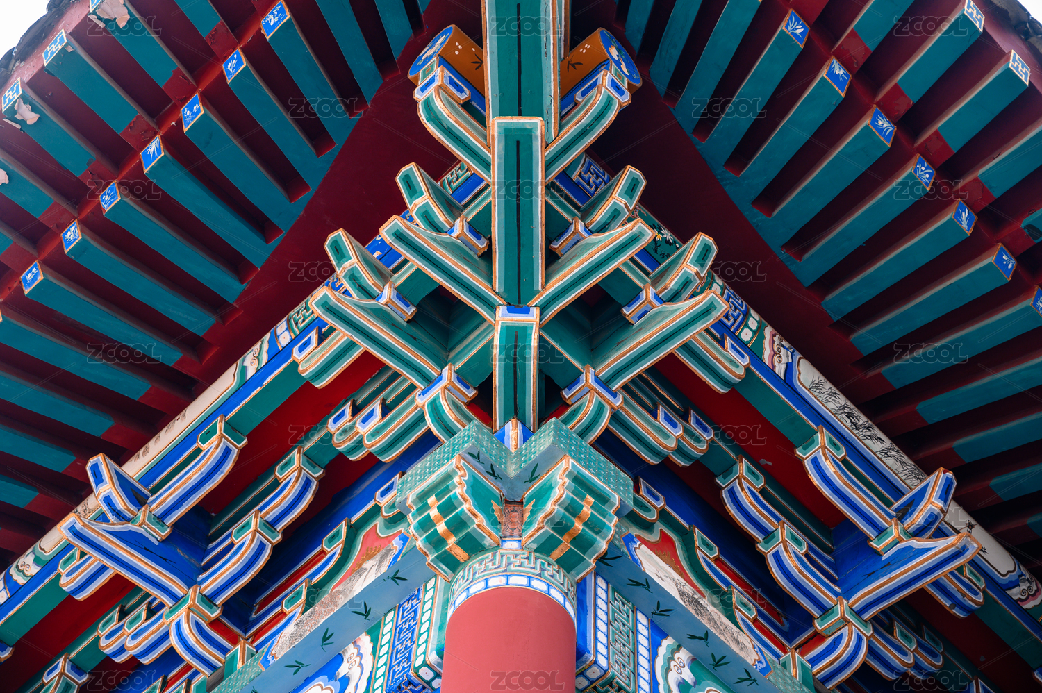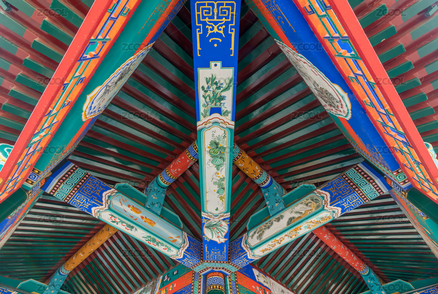 北京颐和园屋顶天花板上的龙纹彩绘装饰