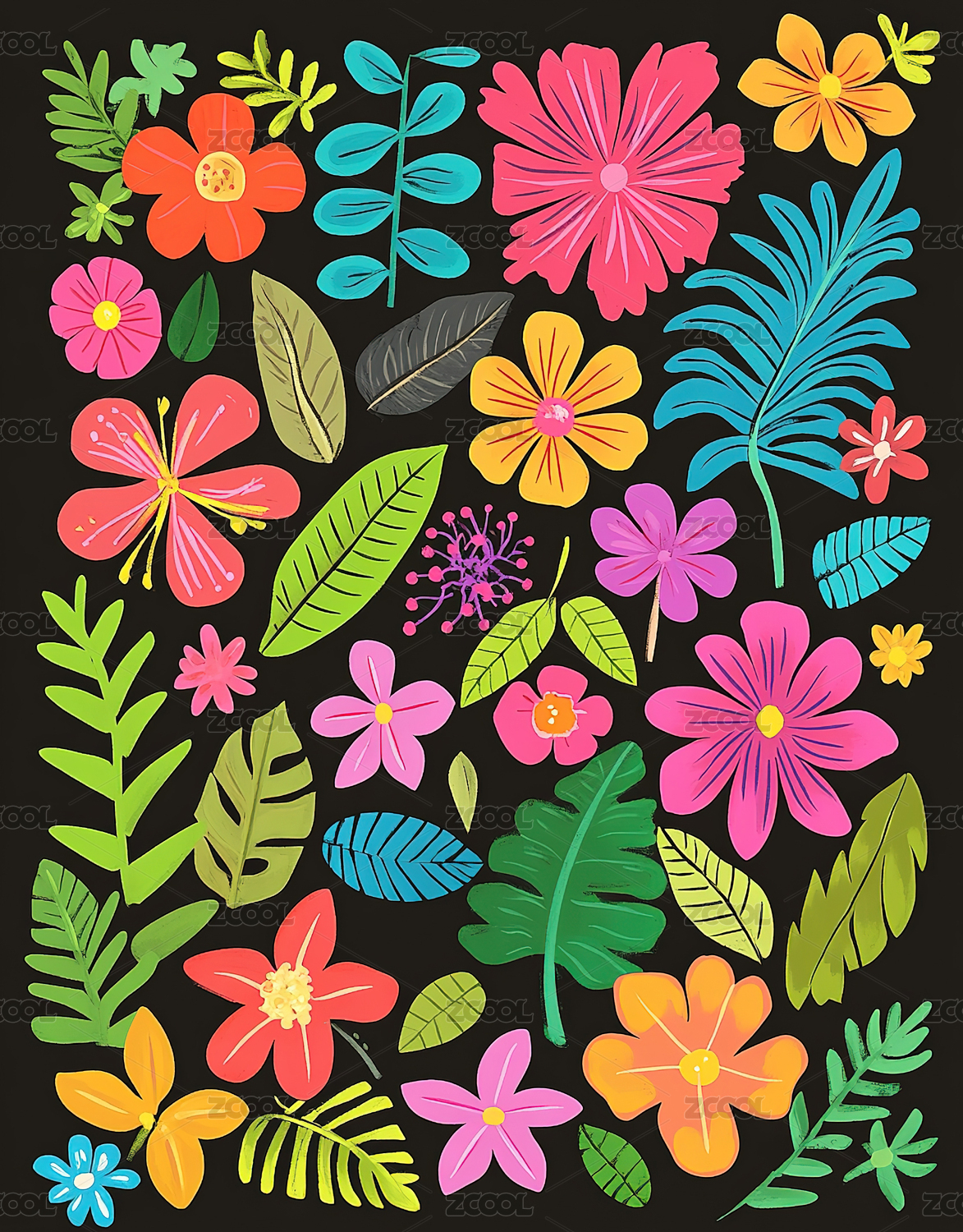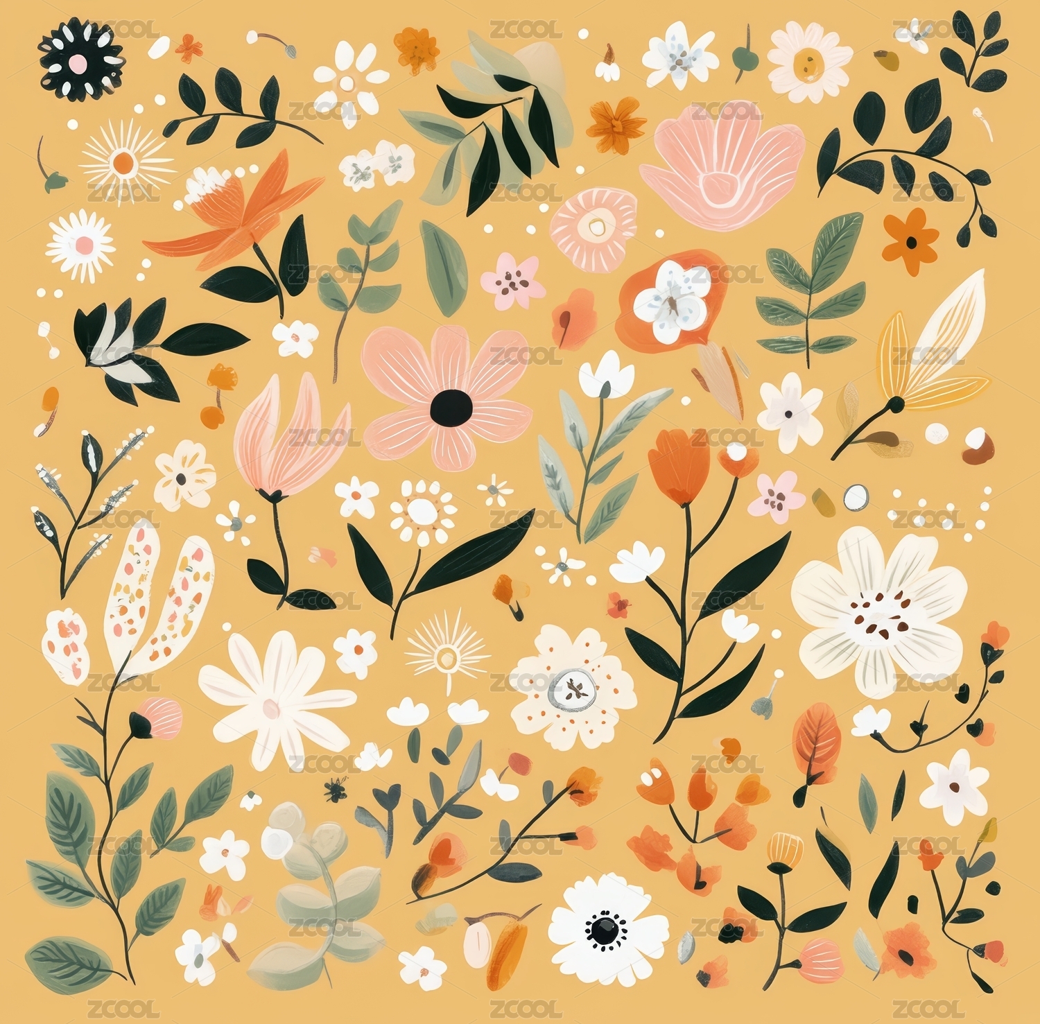 花卉植物美丽春天花朵艺术花瓣元素插画