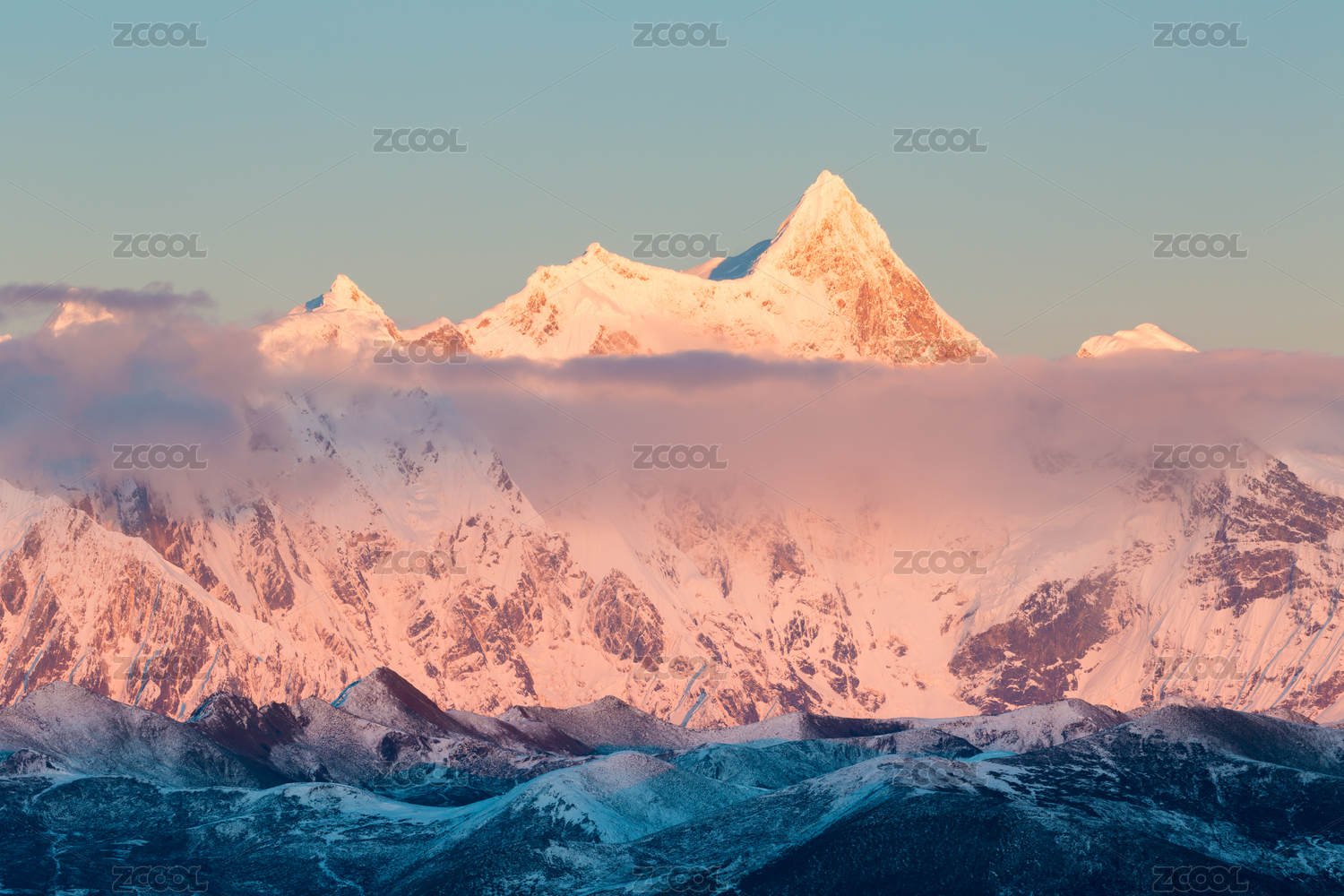 中国西藏日喀则珠峰东坡雪山日照金山