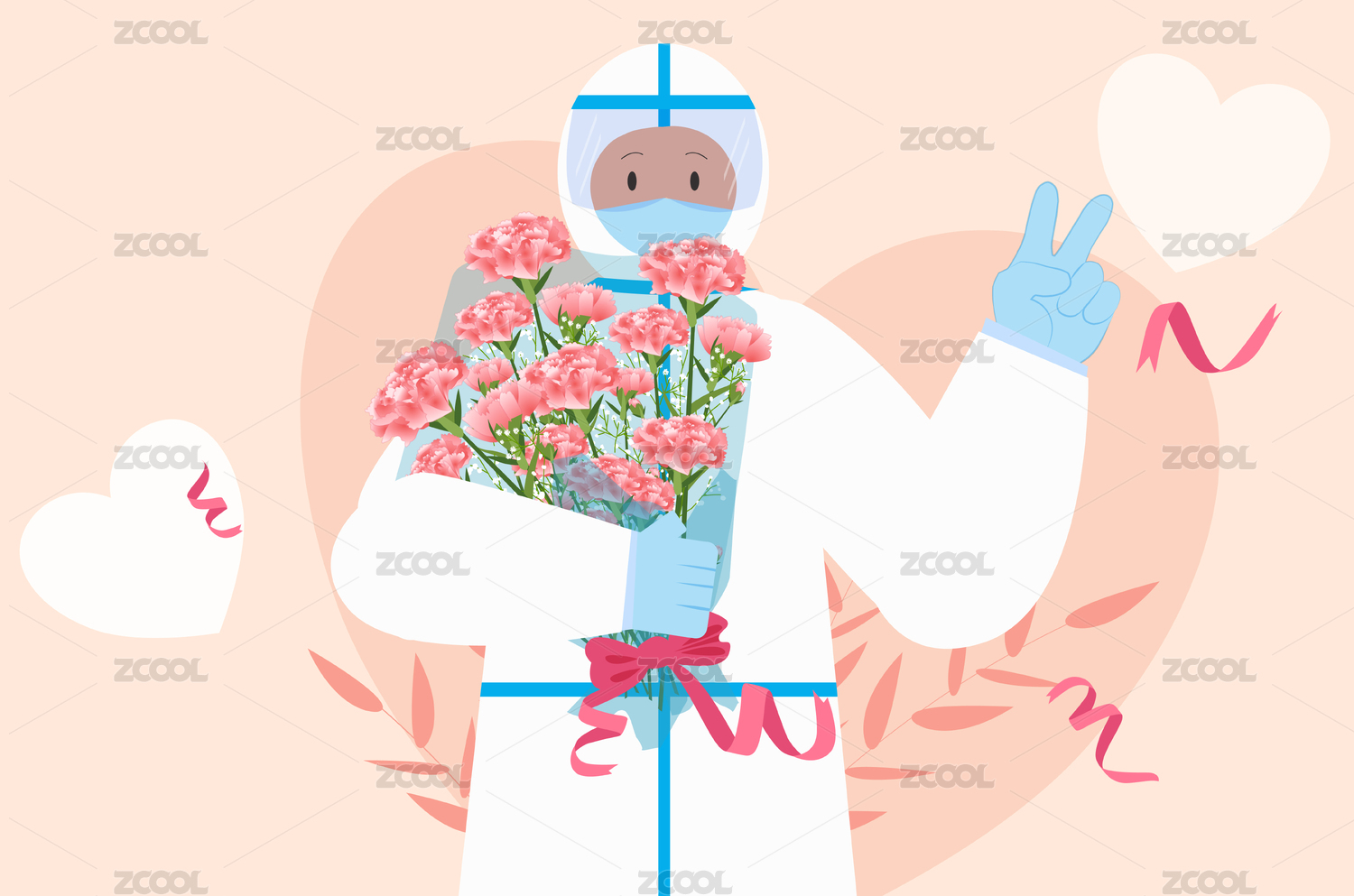 粉,护士,医生,HEMEDI2020,口罩,防护服,捧花,疫情,花,植物