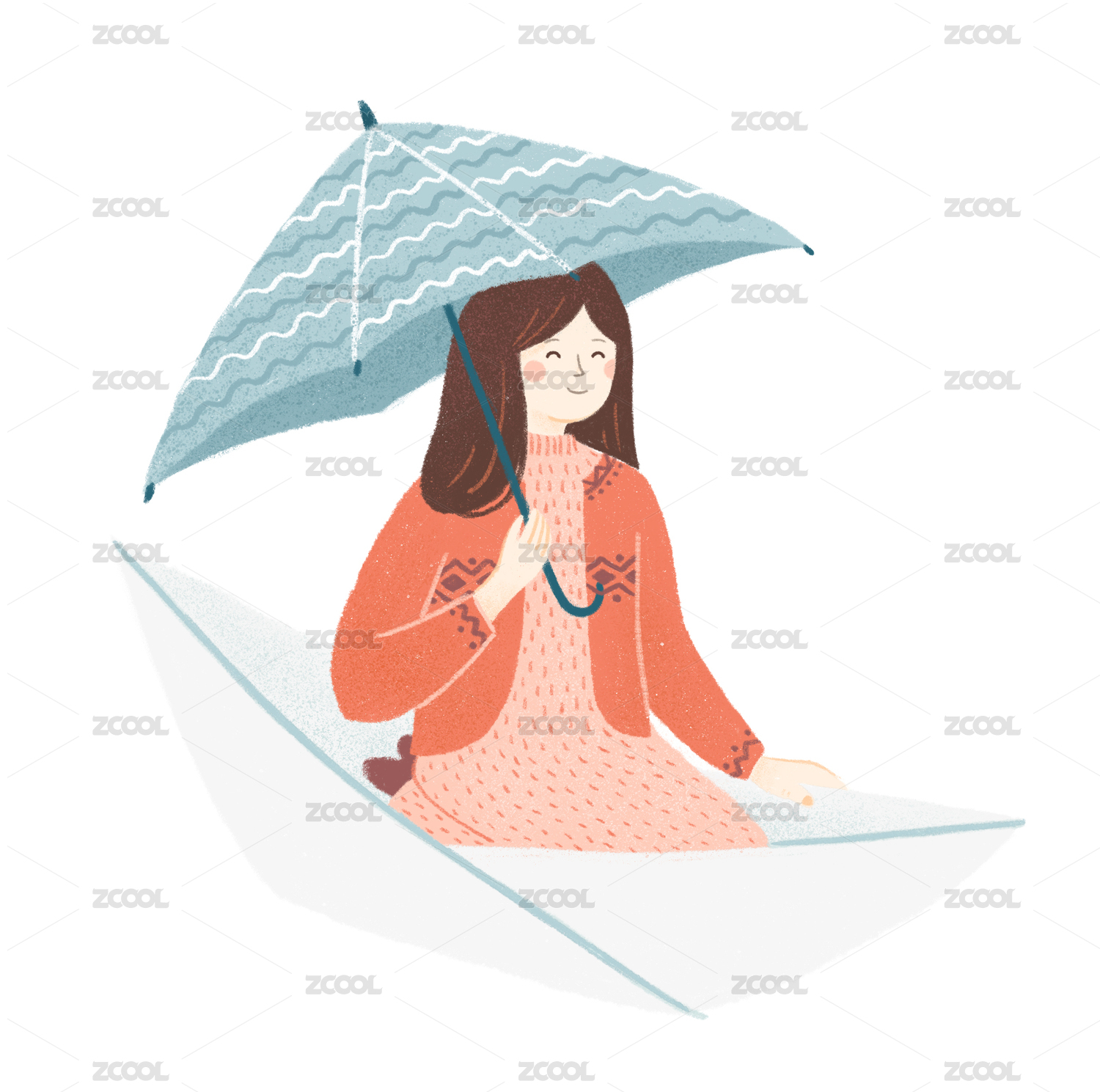 扁平噪点台风天气雨天撑伞的年轻女孩