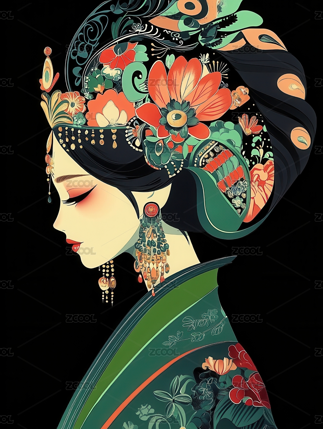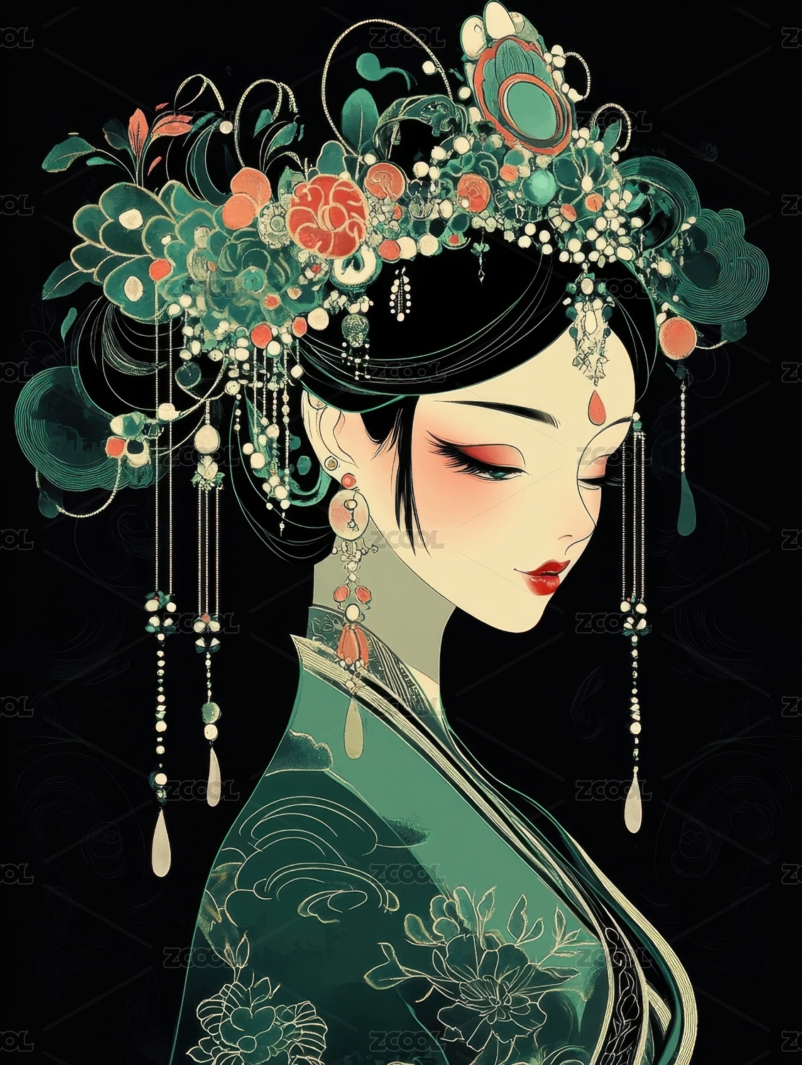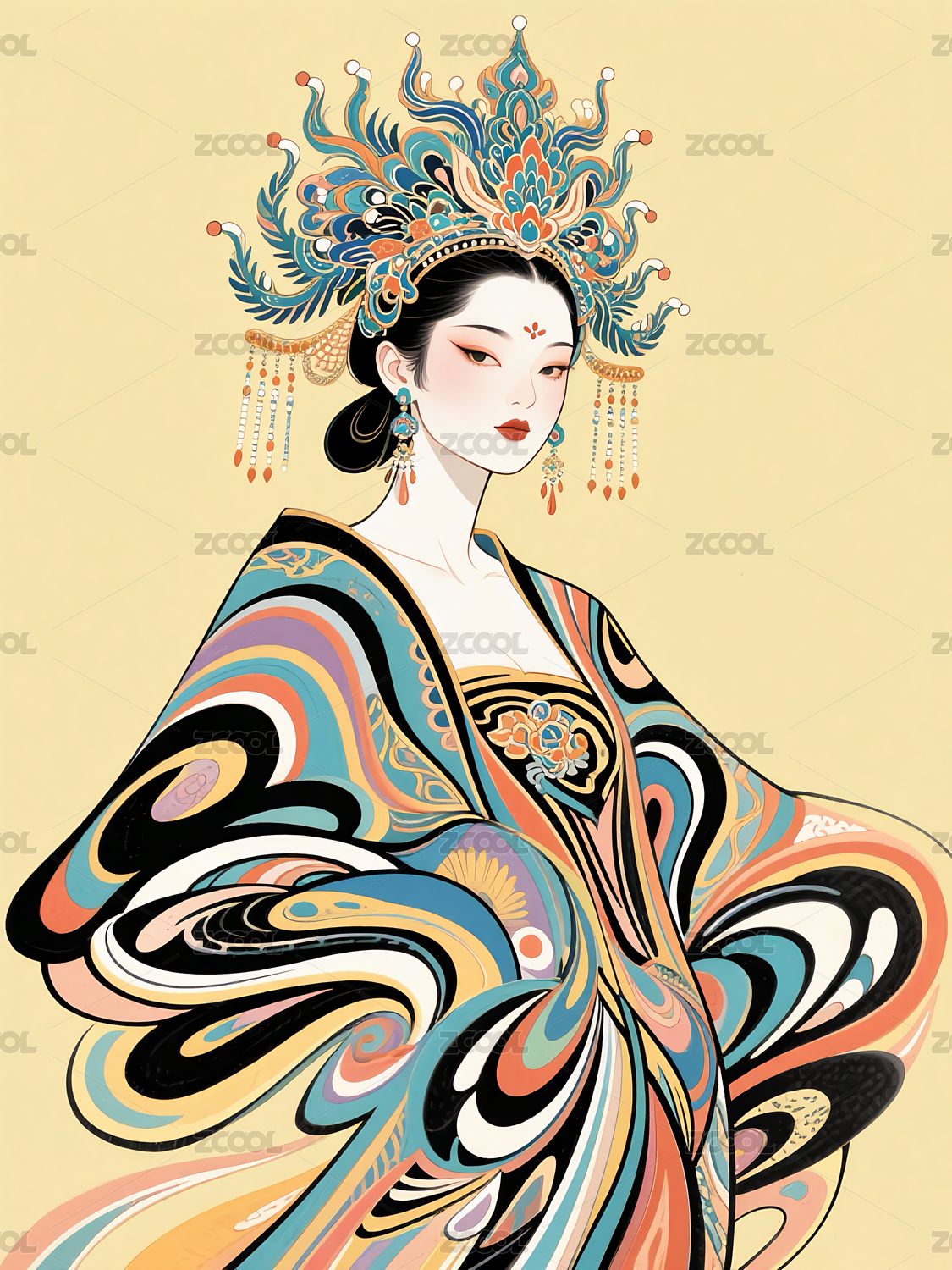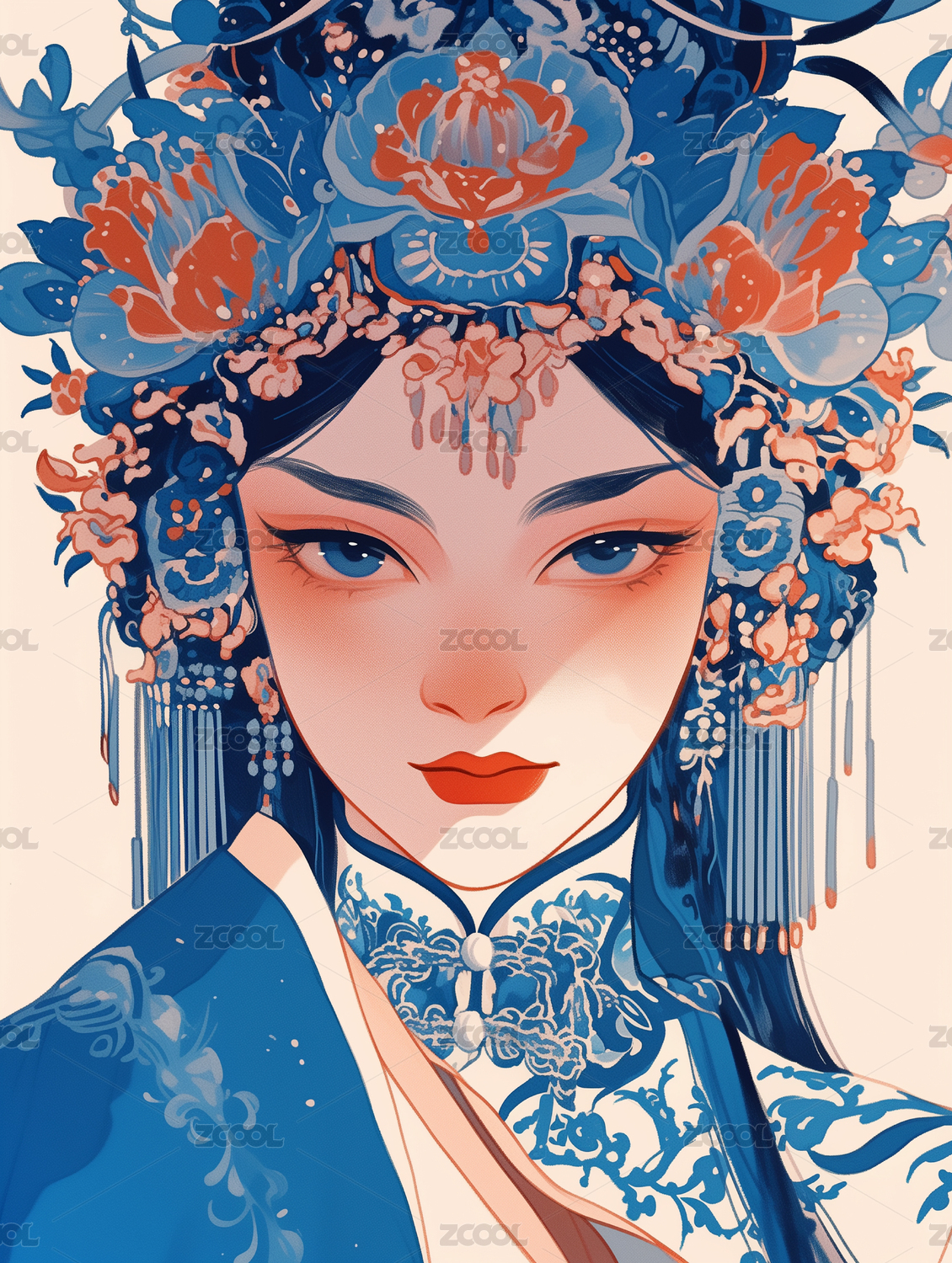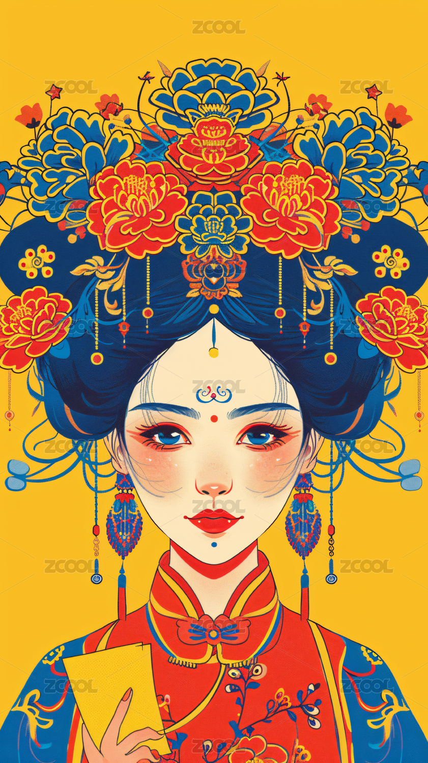 古风戏曲女人正面半身肖像插画