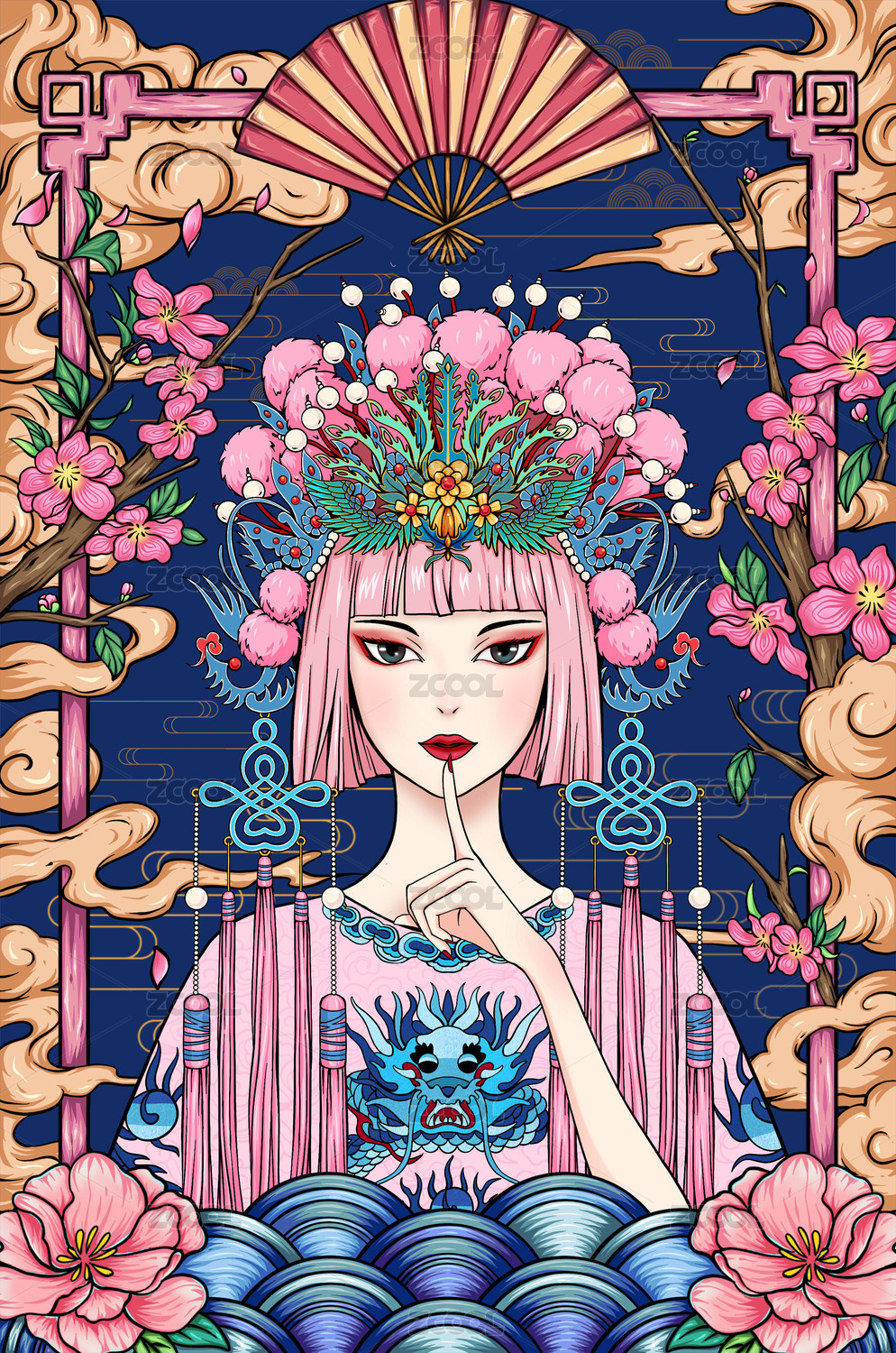 国潮戏曲花旦戏剧少女插画