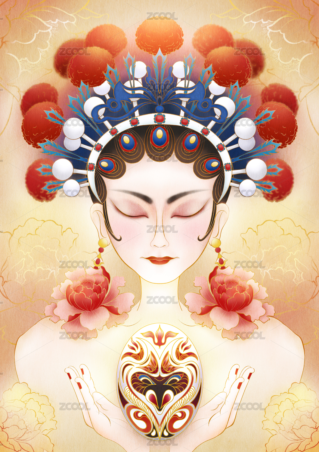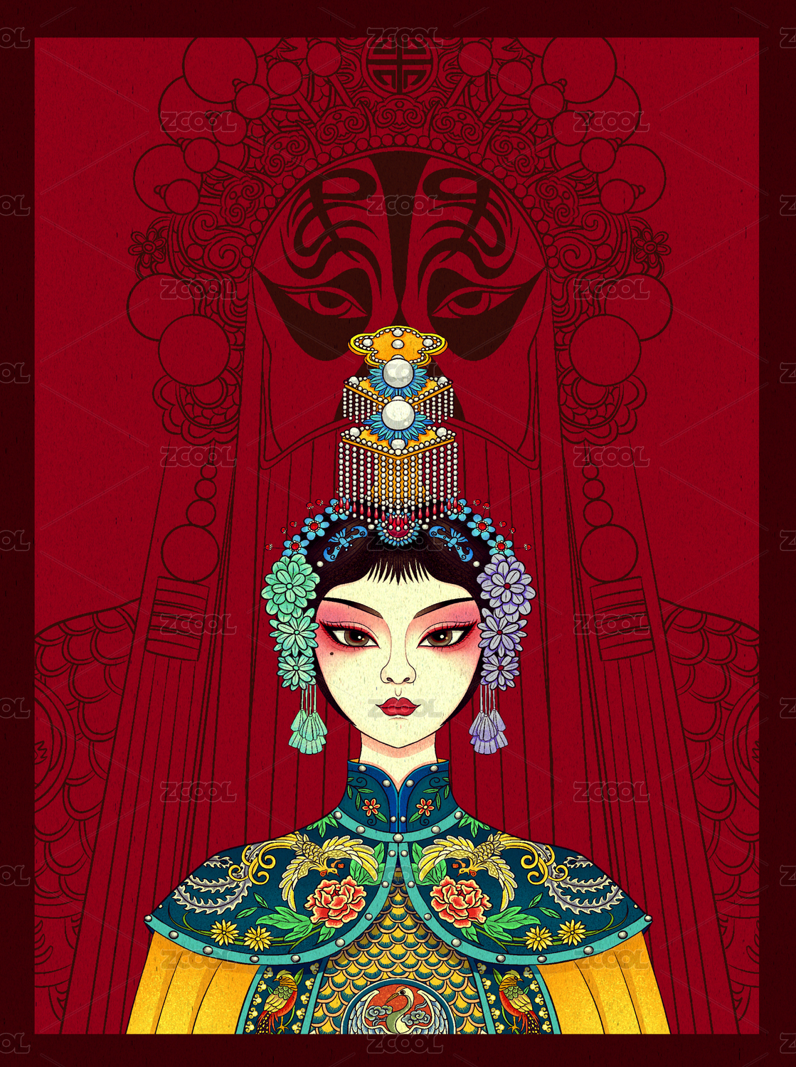 国风国潮京剧人物花旦脸谱